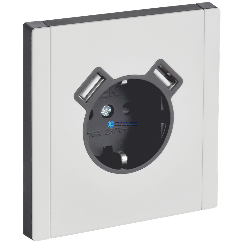 FORTE&PIANO Розетка 1-местная с заземлением с защитными шторками винтовое крепление 16А USB A+A 3,1А FP245M металл белый IEK FP-R14-16-U21-D31-M-K01 IEK