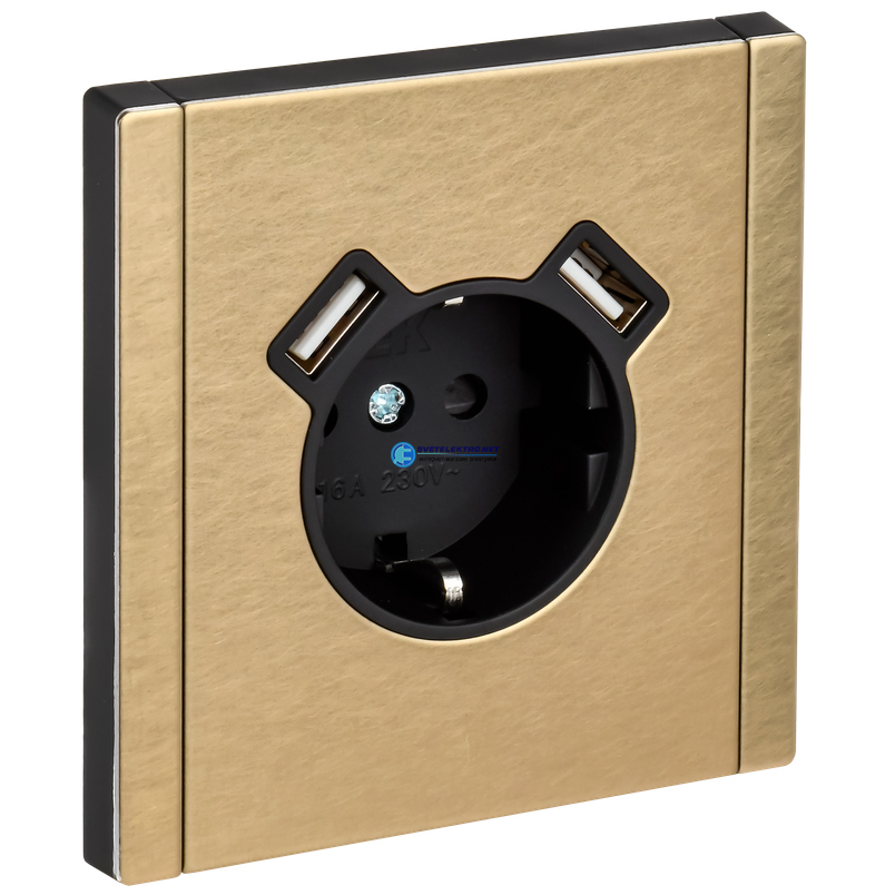 FORTE&PIANO Розетка 1-местная с заземлением с защитными шторками винтовое крепление 16А USB A+A 3,1А FP645M металл шампань, код FP-R14-16-U21-D31-M-K37, производитель IEK