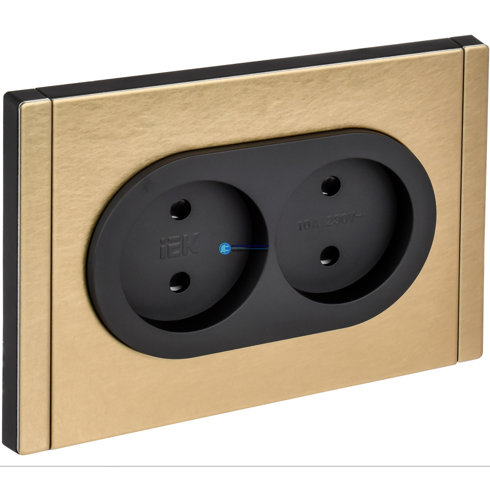 FORTE&PIANO Розетка 2-местная без заземления с защитными шторками безвинтовое крепление 10А FP625M металл шампань, код FP-R23-10-1-M-K37, производитель IEK