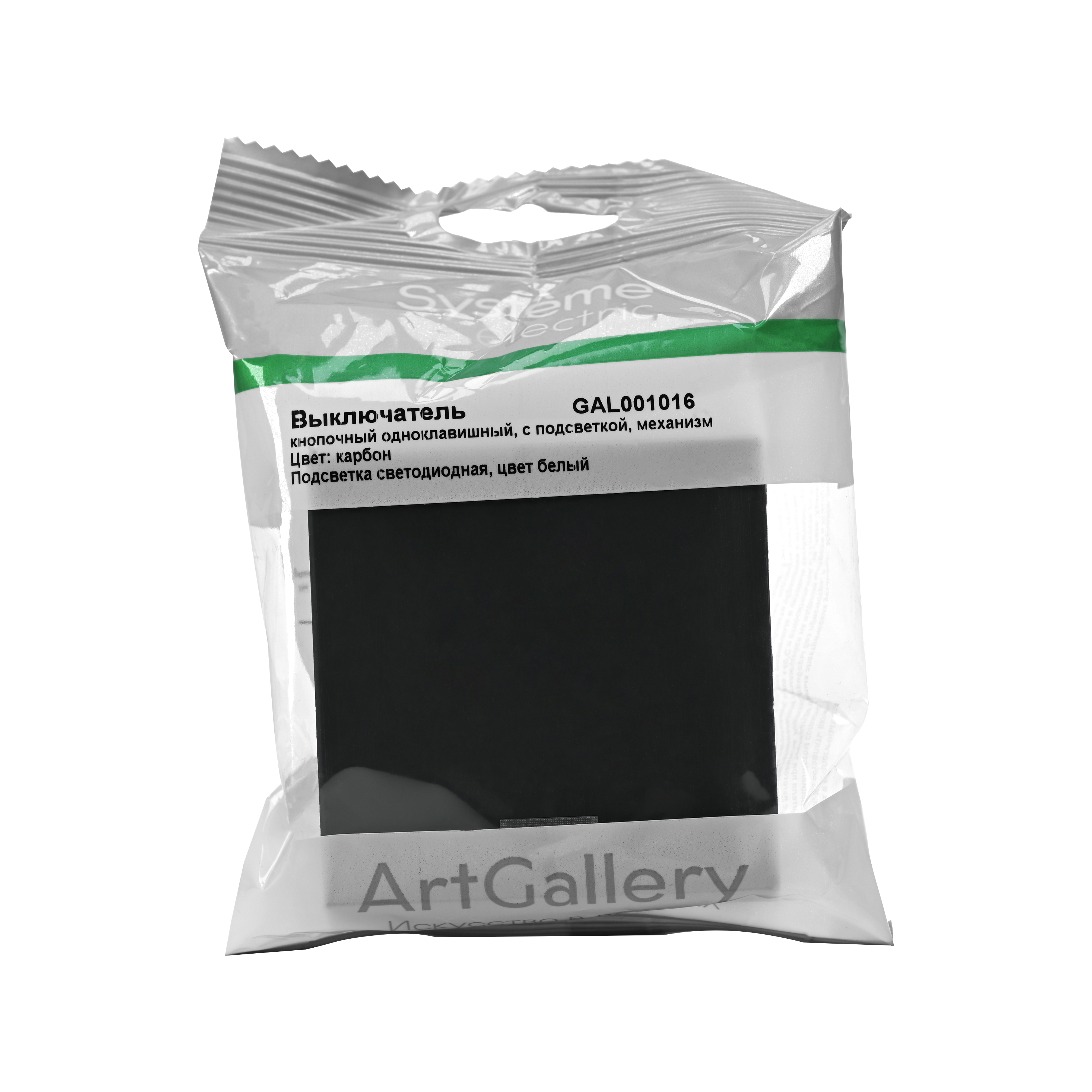 ARTGALLERY 1-клавишный ВЫКЛЮЧАТЕЛЬ КНОПОЧНЫЙ с подсв., 10А, механизм, КАРБОН, код GAL001016, производитель Systeme Electric
