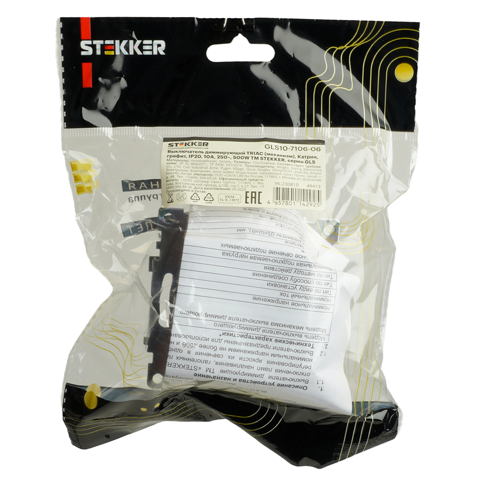 Выключатель диммирующий TRIAC (механизм) 250В 500W серия Катрин графит, код GLS10-7106-06 49413, производитель Stekker