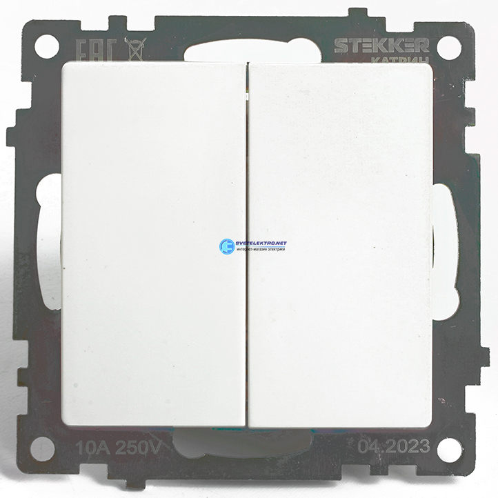 Переключатель 2-клавишный (механизм) 250В 10А серия белый, код 49166, производитель Stekker
