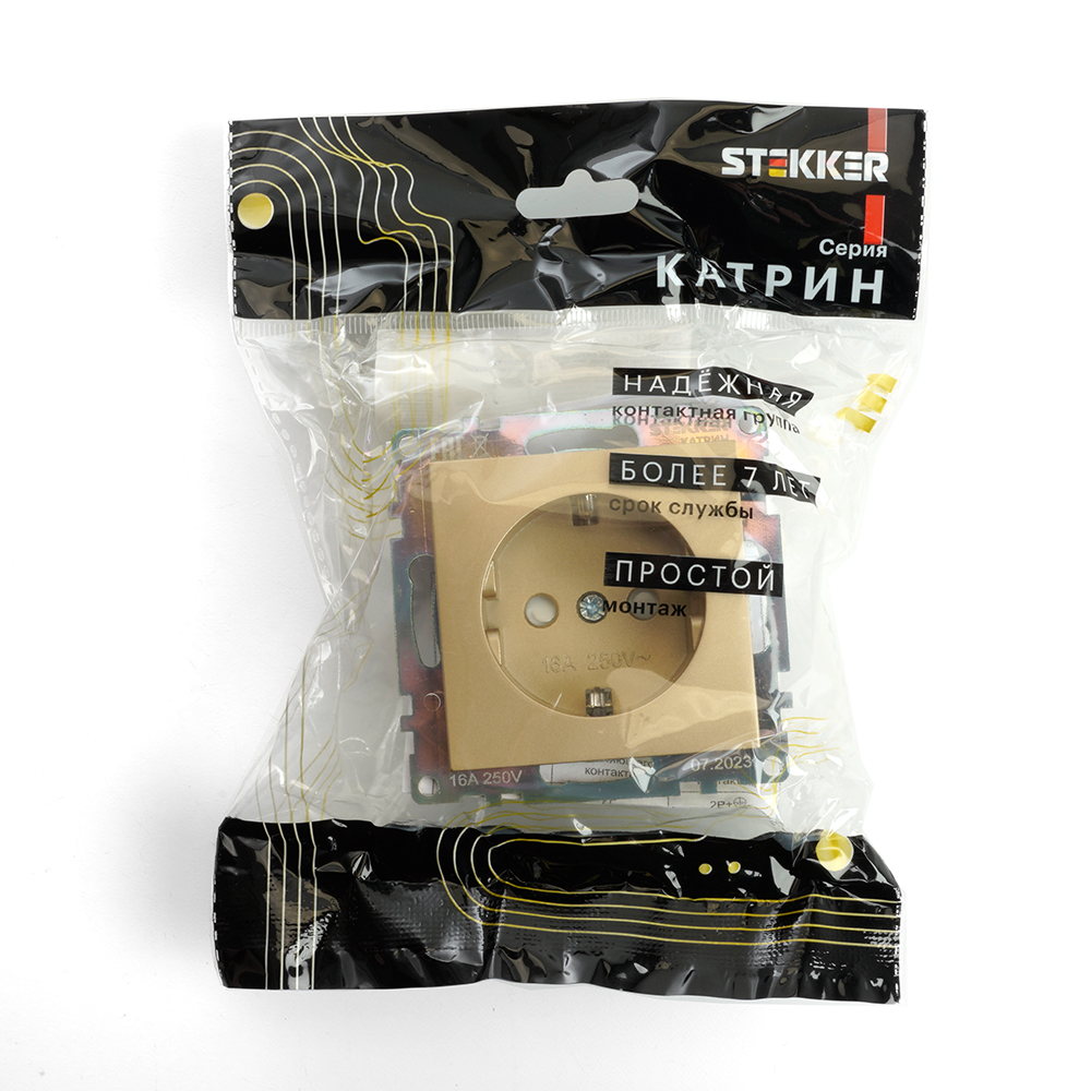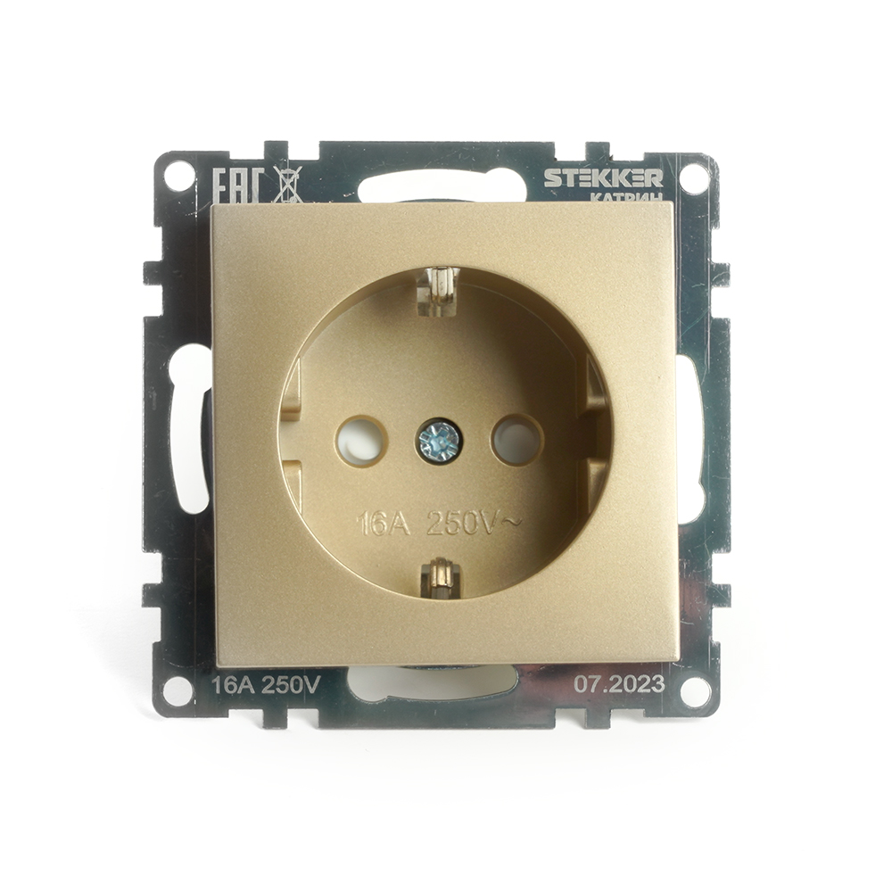 Розетка одноместная с/з (механизм) 250В 16А серия Катрин золото, код GLS16-7110-08 49224, производитель Stekker
