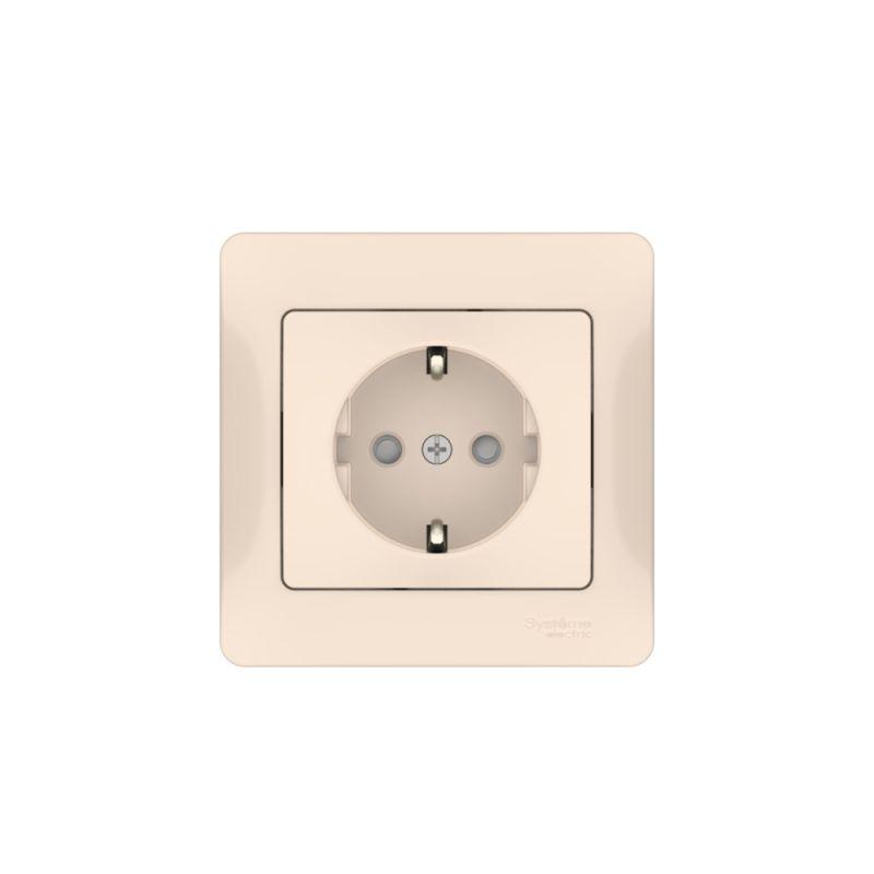 GLOSSA РОЗЕТКА с заземлением со шторками, 16А, в сборе, быстрозажим. клем., БЕЖЕВЫЙ, код GSL000244S, производитель Systeme Electric