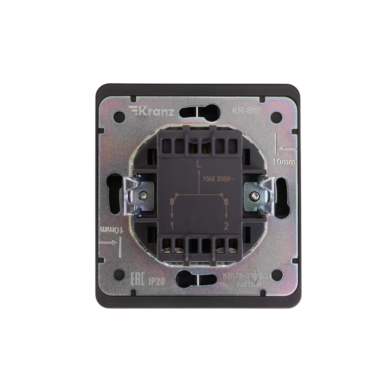 Переключатель ROUND двухклавишный проходной 10А скрытой установки механизм оникс, код KR-78-0709-3, производитель Kranz