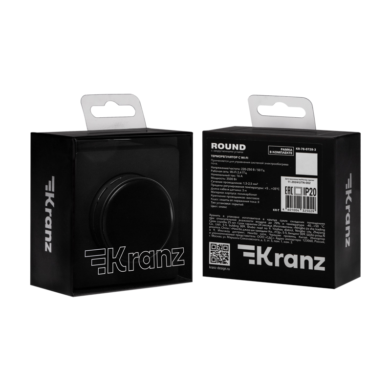 ROUND Термостат электронный с индикацией Wi-Fi скрытой установки оникс, код KR-78-0728-3, производитель Kranz