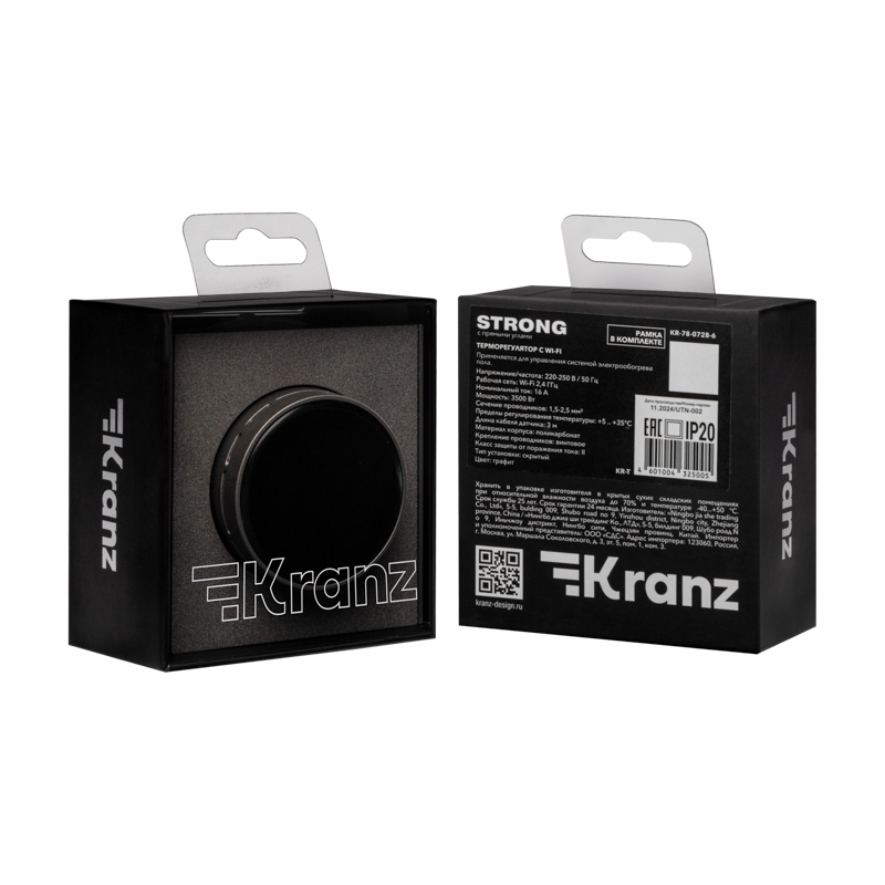 STRONG Термостат электронный с индикацией Wi-Fi скрытой установки графит, код KR-78-0728-6, производитель Kranz