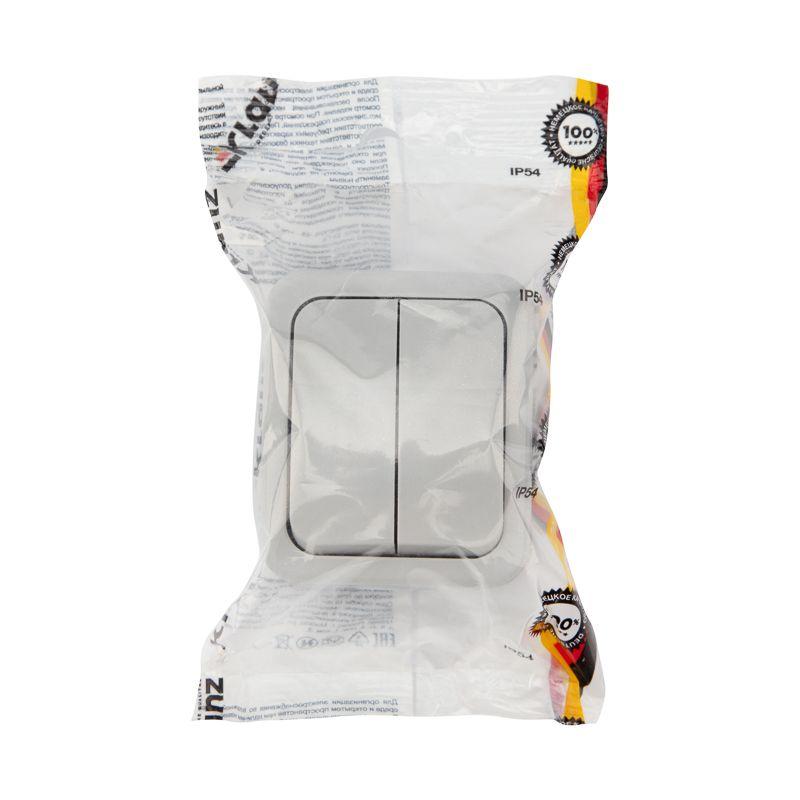 Выключатель двухклавишный Mini OG IP54, о/у, серый, код KR-78-0833, производитель Kranz