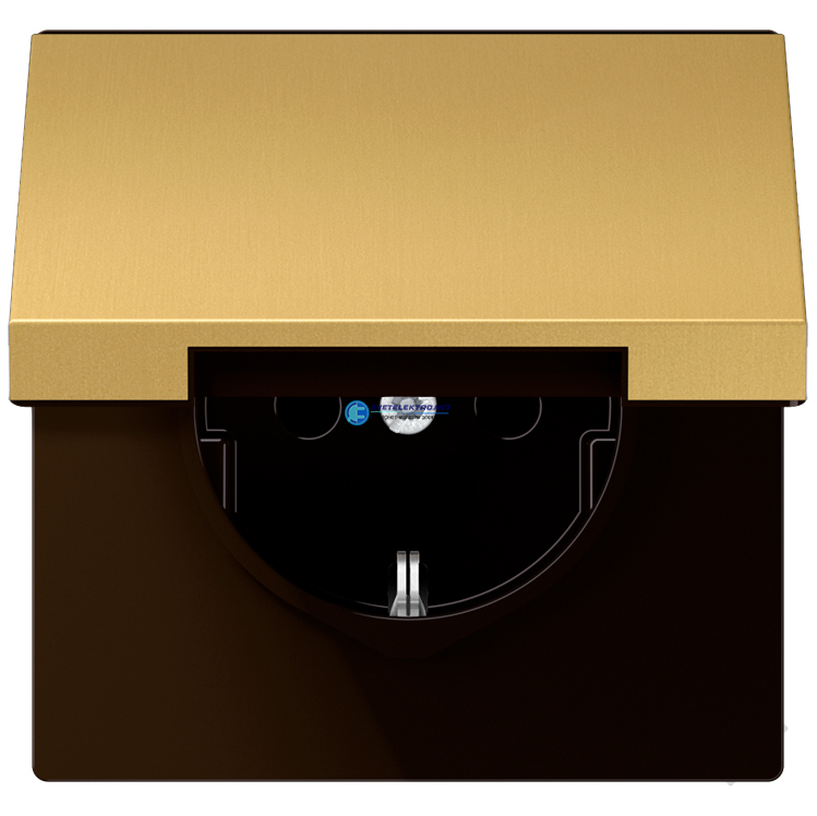 Штепсельная розетка SCHUKO одинарная, с заземлением, с откидной крышкой, 16A, 250В (механизм + накладка, без рамки). Серия LS990 Материал- металл Ц, код ME1520KLC, производитель JUNG