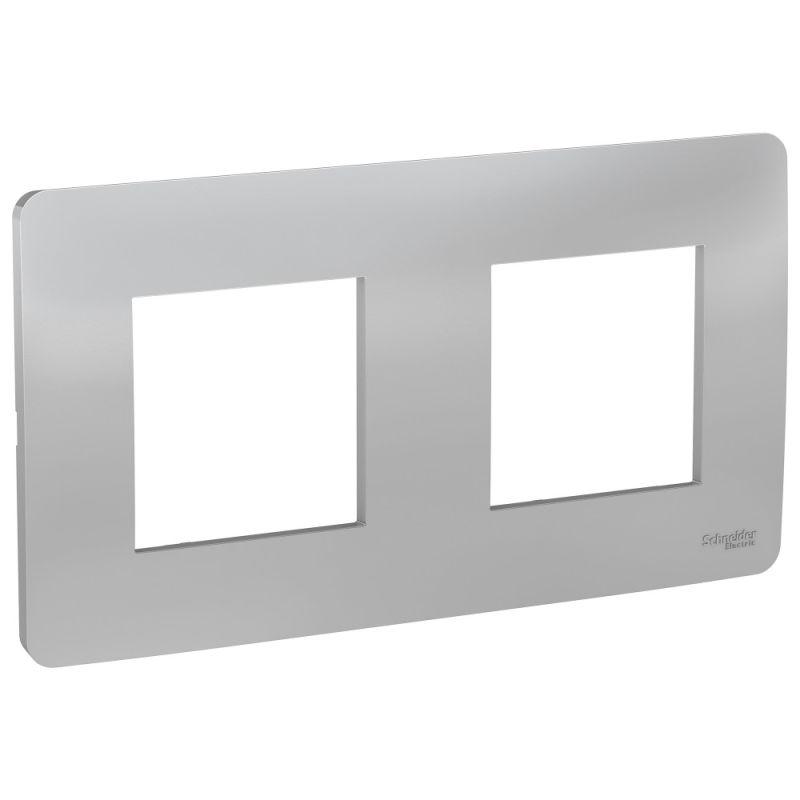 Рамка UNICA STUDIO двухпостовая алюминий, код NU200430, производитель Schneider Electric