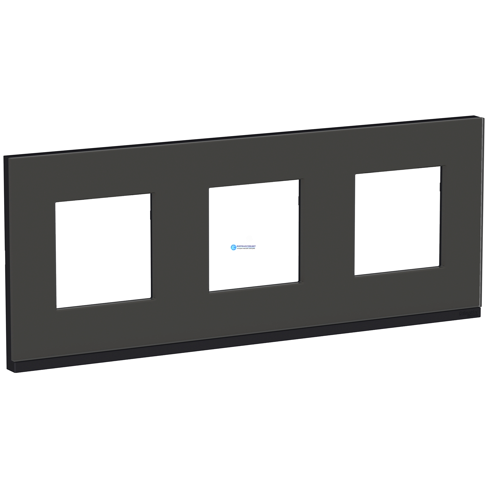 Рамка UNICA PURE трехпостовая горизонтальная черное стекло/антрацит, код NU600686, производитель Schneider Electric