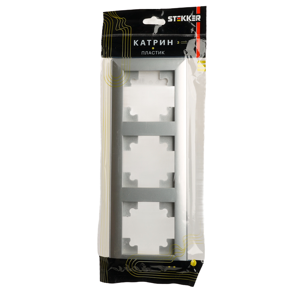 Рамка трехместная пластик серия Катрин серебро, код PFR00-7003-03 39799, производитель Stekker
