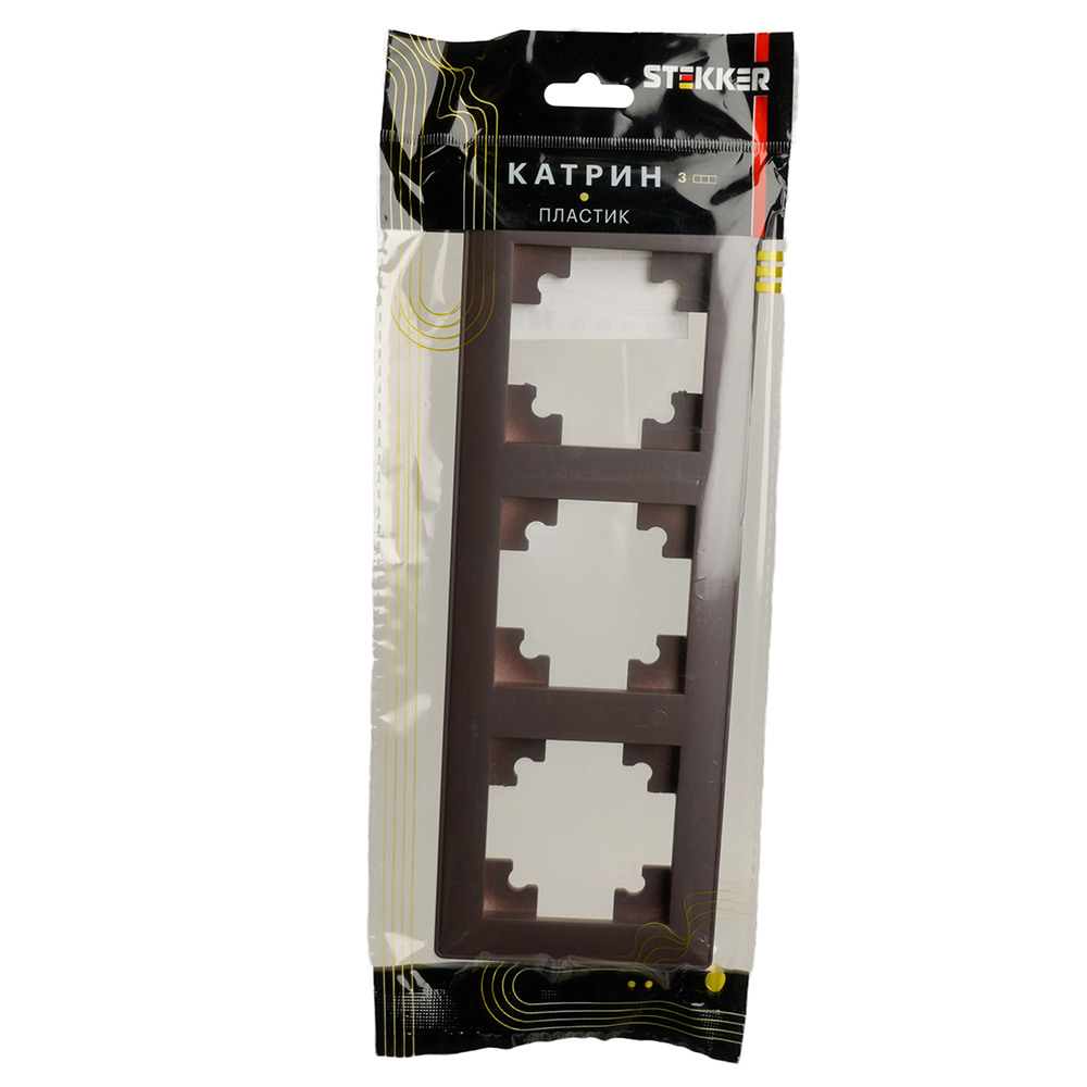 Рамка трехместная пластик серия Катрин шоколад, код PFR00-7003-04 39819, производитель Stekker