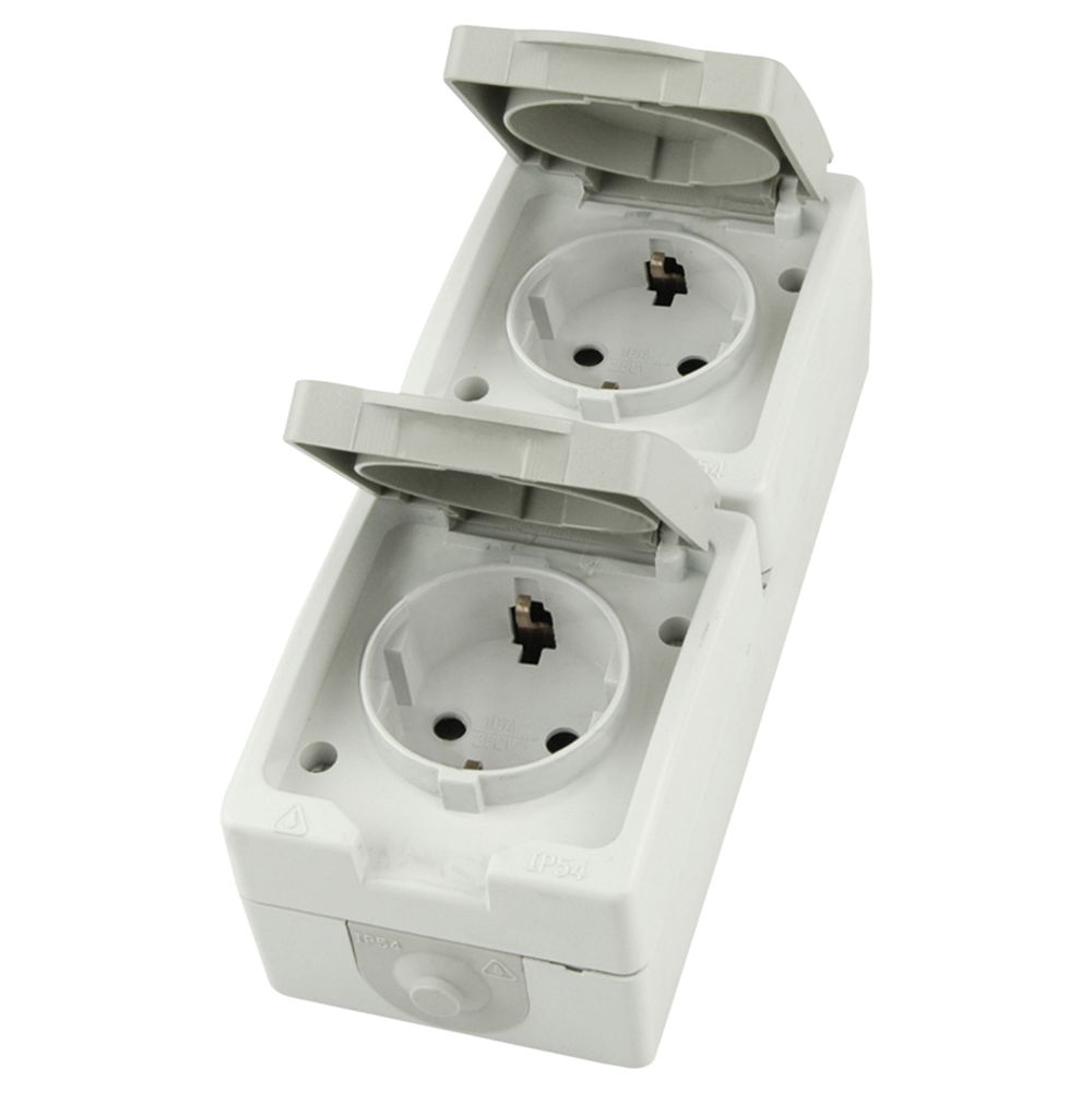 Вертикальная розетка 2-местная с крышкой с/з 250В 16А IP54 серия Велена белый/серый, код PST16-22-54V 49737, производитель Stekker