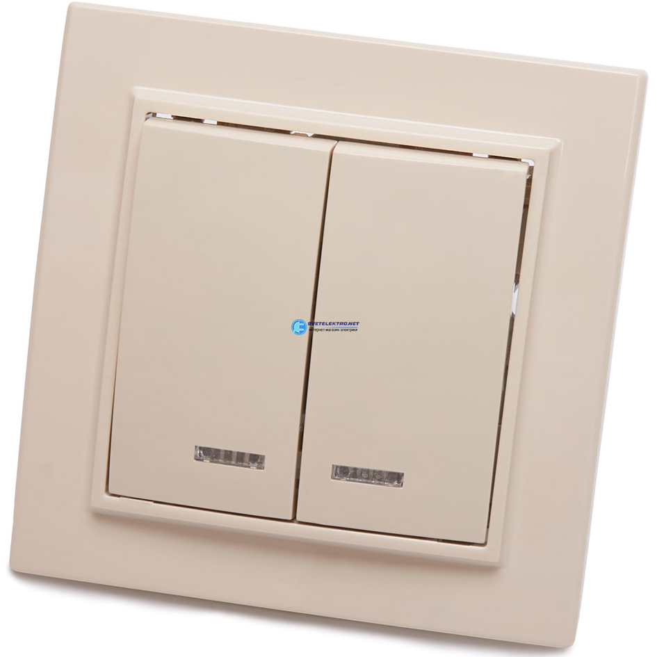 Выключатель двухклавишный c индикатором, серия Эрна, слоновая кость,, код 39229, производитель Stekker