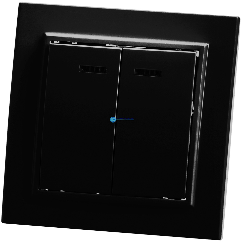 Выключатель двухклавишный c индикатором, 250В, 10А, серия Эрна, черный, код 39471, производитель Stekker