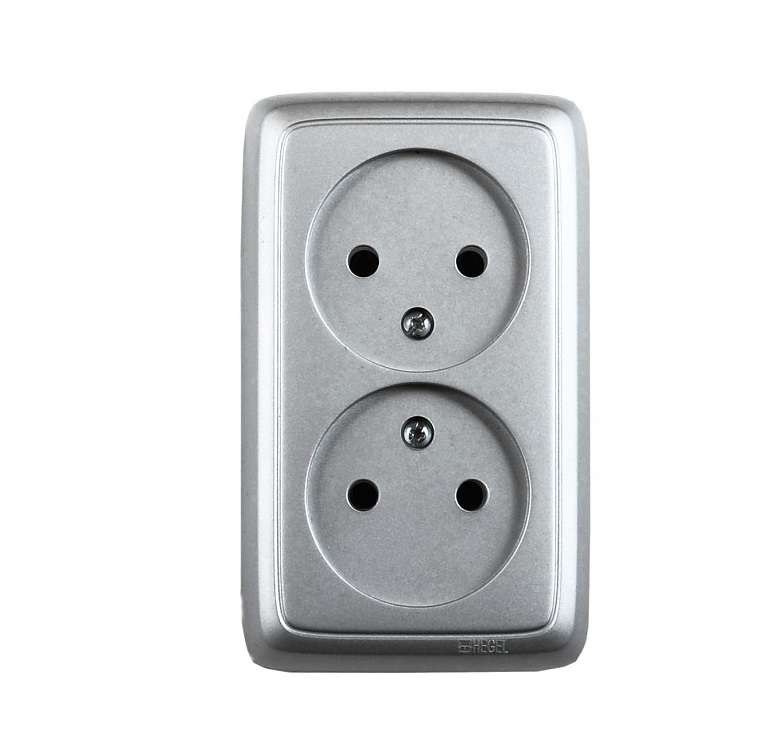 Розетка двойная наружная с изоляционной пластиной серебро РА16-143-06 HEGEL