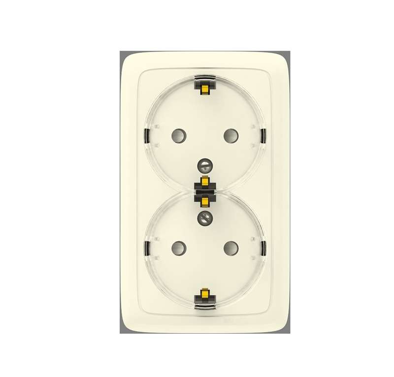 Розетка двойная наружная с заземлением с изоляционной пластиной слоновая кость (стакан) РА16-183-01 HEGEL
