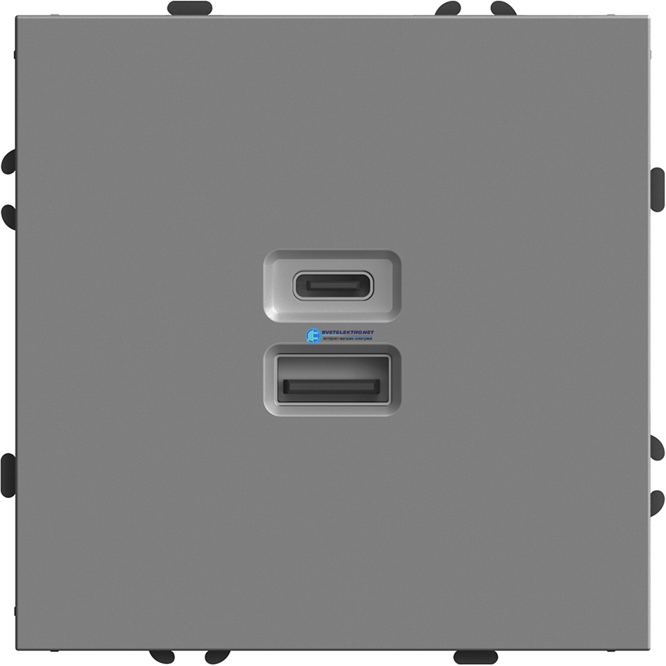 Розетка 2-местная USB + Type C (механизм), 250В, 20W, серия Эмили платиново-серый soft touch, код RST10-5115-10 49957, производитель Stekker