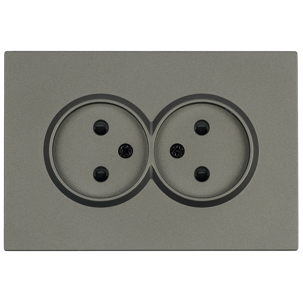 Розетка 2-местная с защитной шторкой б/з 250В 16А антрацит soft touch серия Эмили, код RST10-5116-09 49929, производитель Stekker