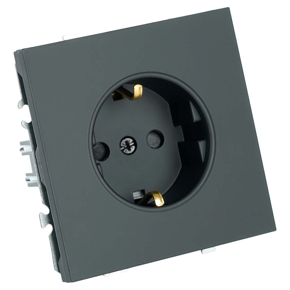 Розетка 1-местная с з/ш с/з (механизм) СЗК 250В 16А черный уголь soft touch серия Эмили, код RST16-5110-05ZK 50251, производитель Stekker