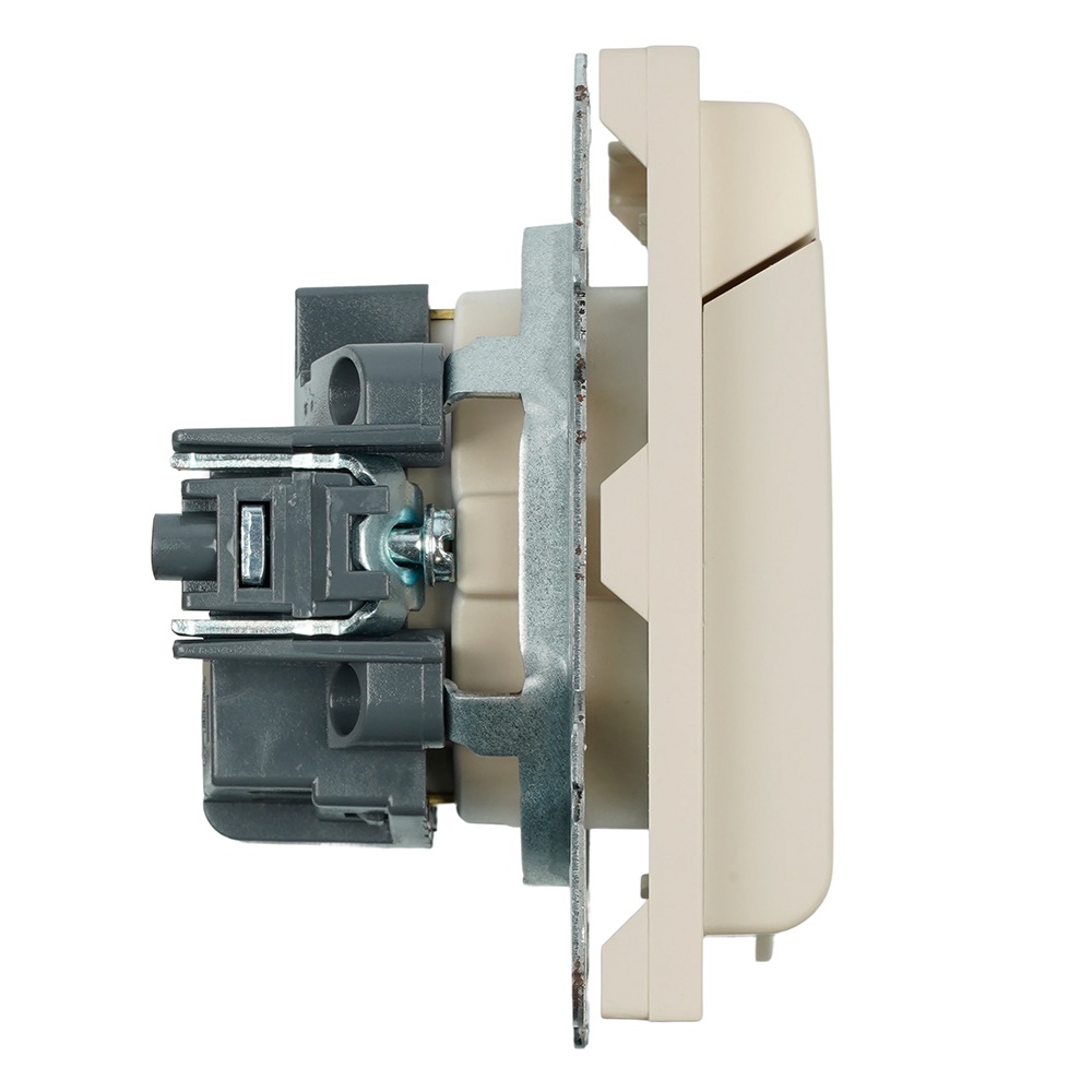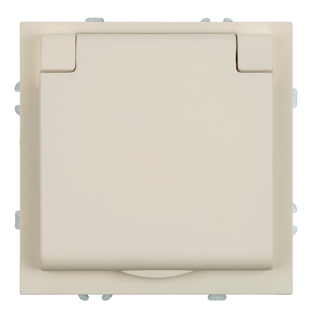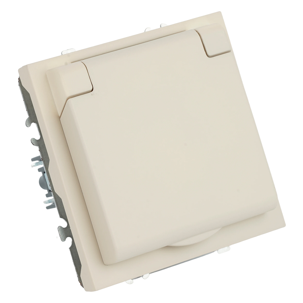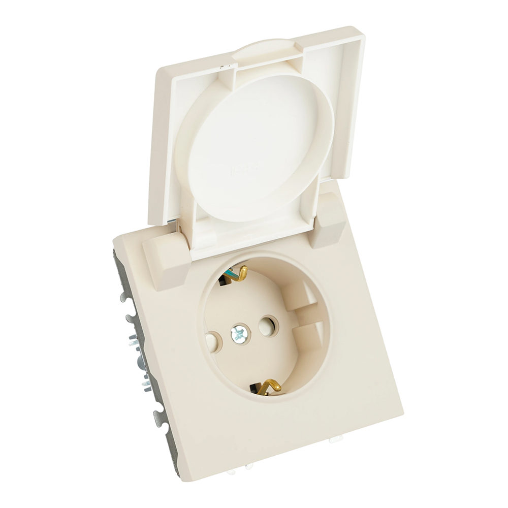 Розетка 1-местная с крышкой с защитной шторкой с/з (механизм) 250В 16А кашемир soft touch серия Эмили, код RST16-5112-08 49907, производитель Stekker