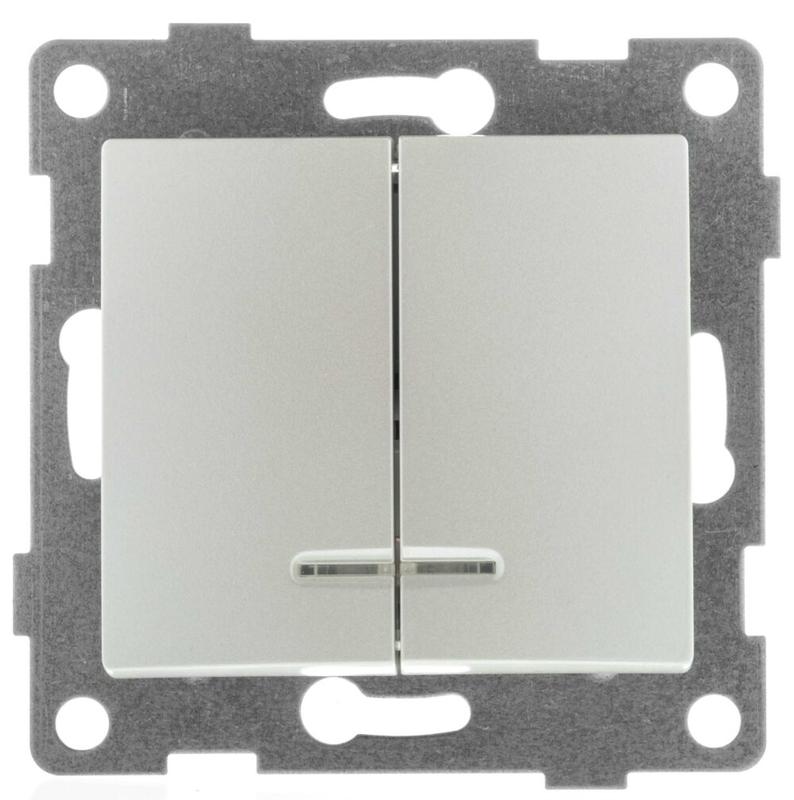 GUSI Bravo МЕХАНИЗМ Выключатель двухклавишный со светоиндикацией, скрытая установка, 10А, 250В. Цвет шампань С10В28-028 GUSI ELECTRIC