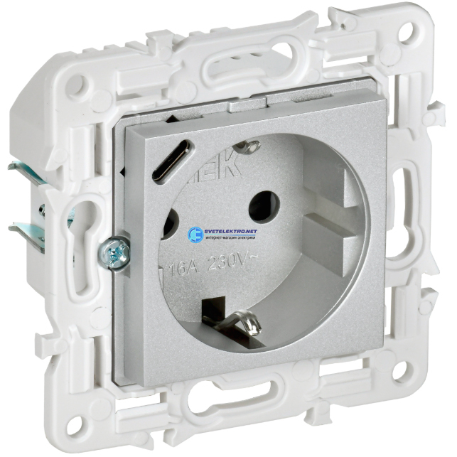 SKANDY Розетка с заземлением с защитными шторками 16А с USB C 18Вт SK-R17S серебряный, код SK-R14-16-U14-018-K23, производитель IEK