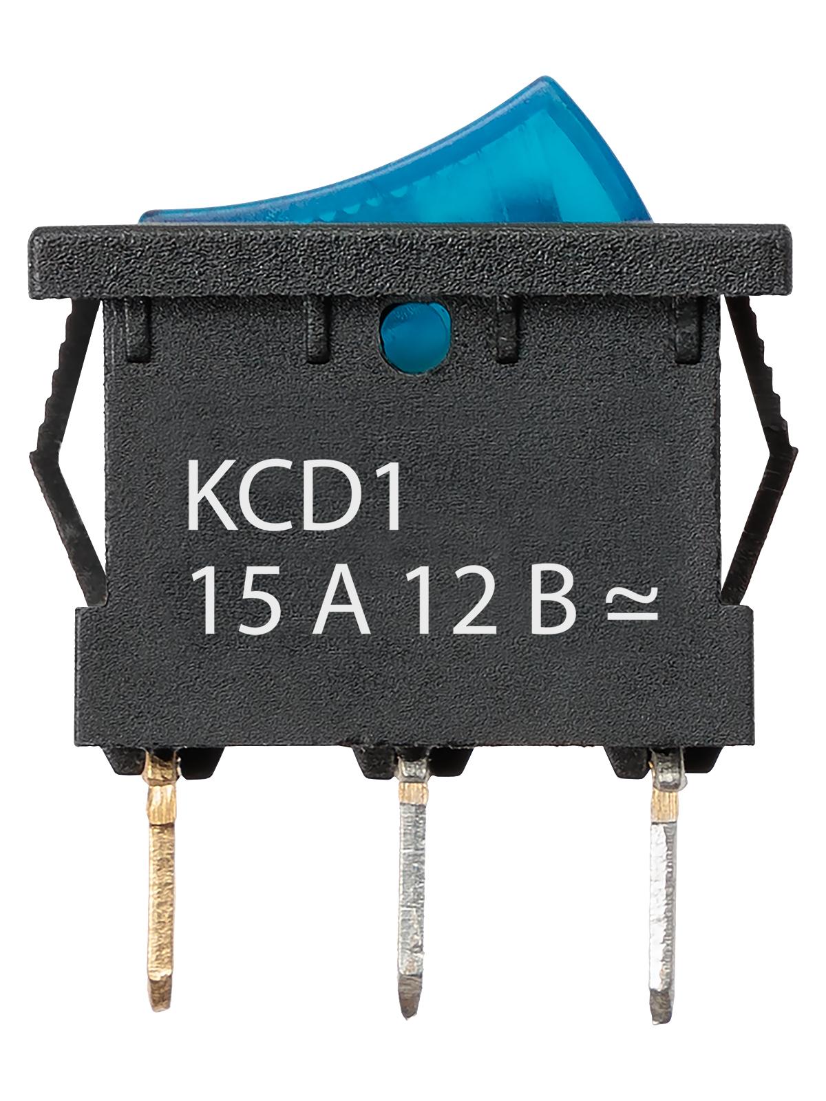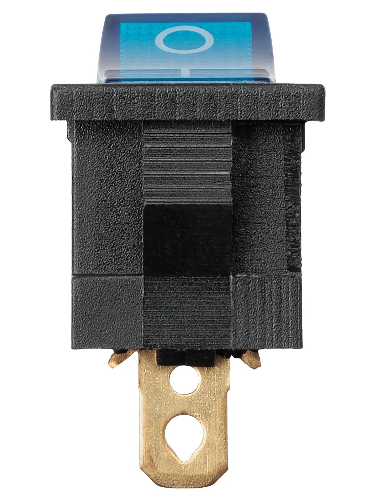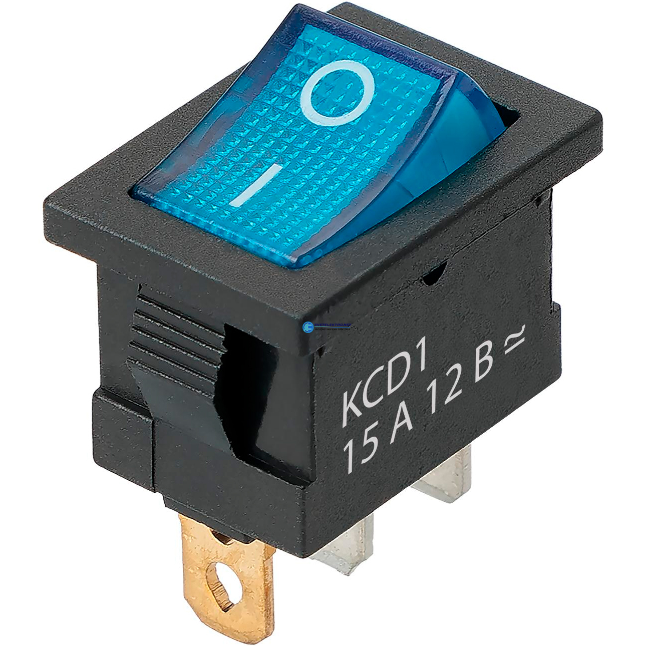 Выключатель клавишный KCD1-101N 12В AC/DC, 1P, 15А, (3с), ON-OFF, черный корпус, синяя клавиша с LED подсветкой, Mini, код SQ0746-0132, производитель TDM