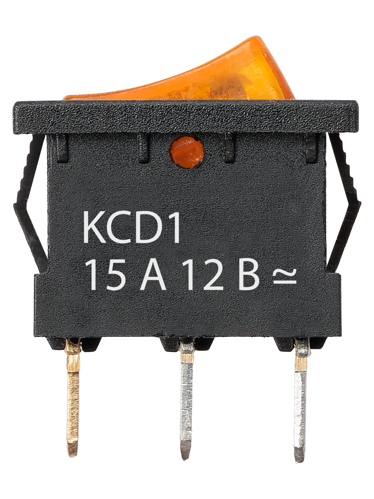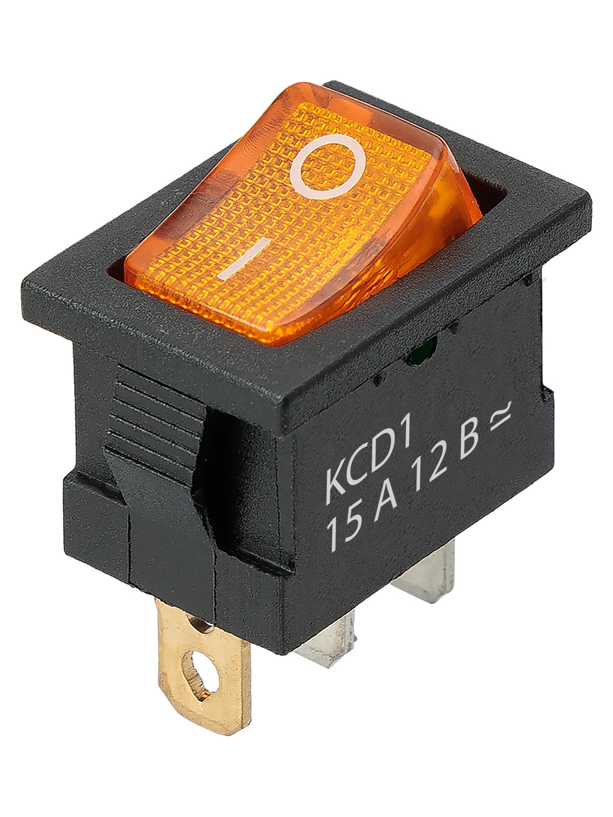 Выключатель клавишный KCD1-101N 12В AC/DC, 1P, 15А, (3с), ON-OFF, черный корпус, желтая клавиша с LED подсветкой, Mini, код SQ0746-0133, производитель TDM