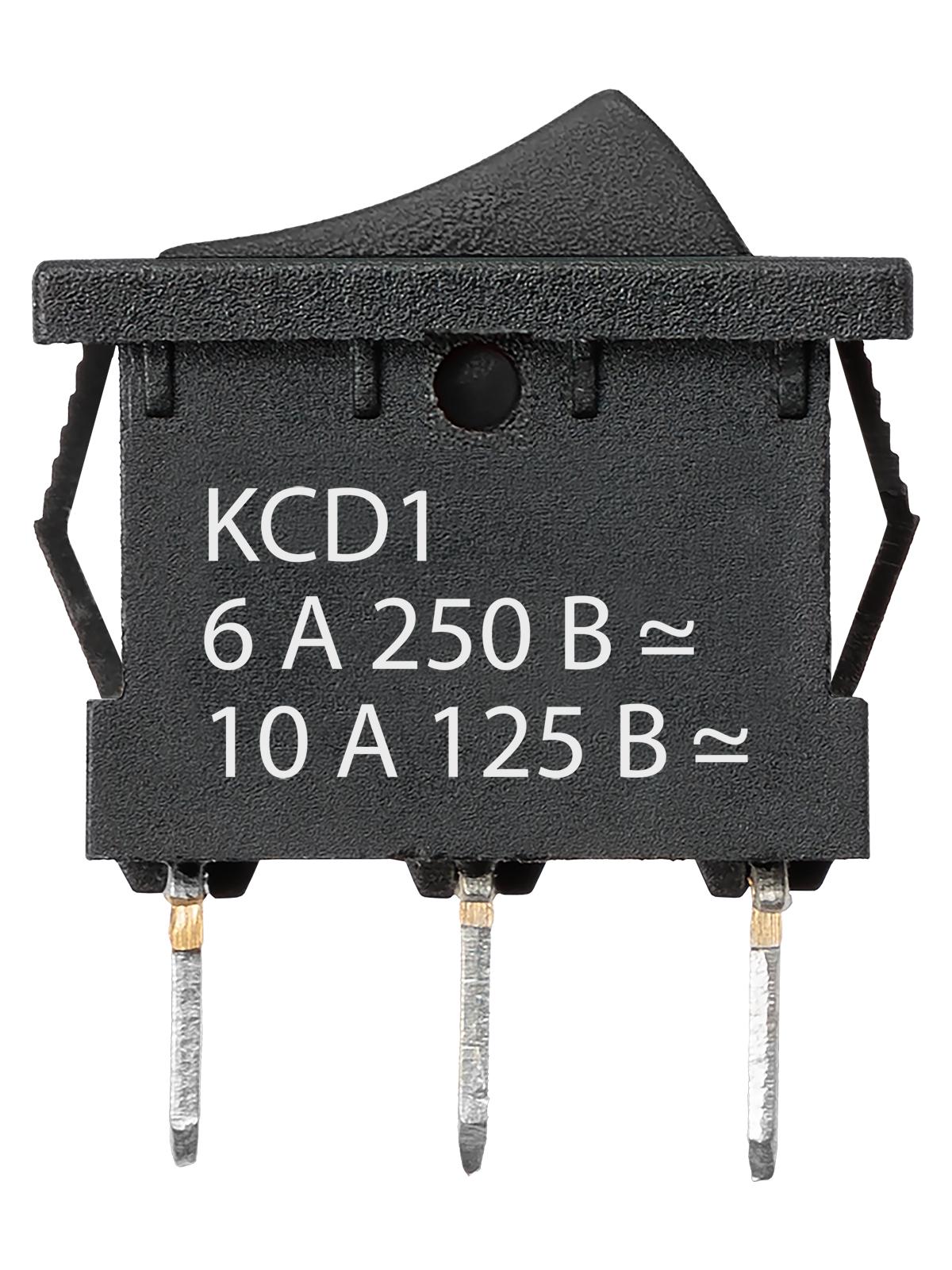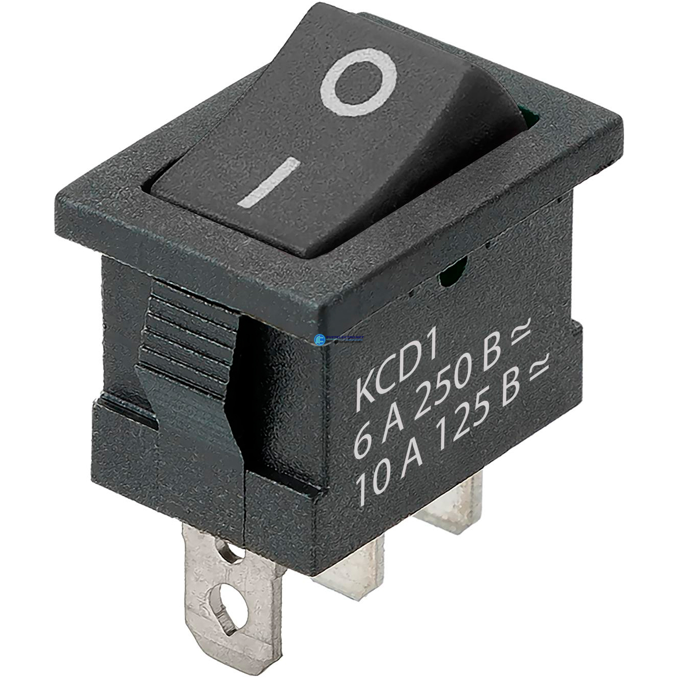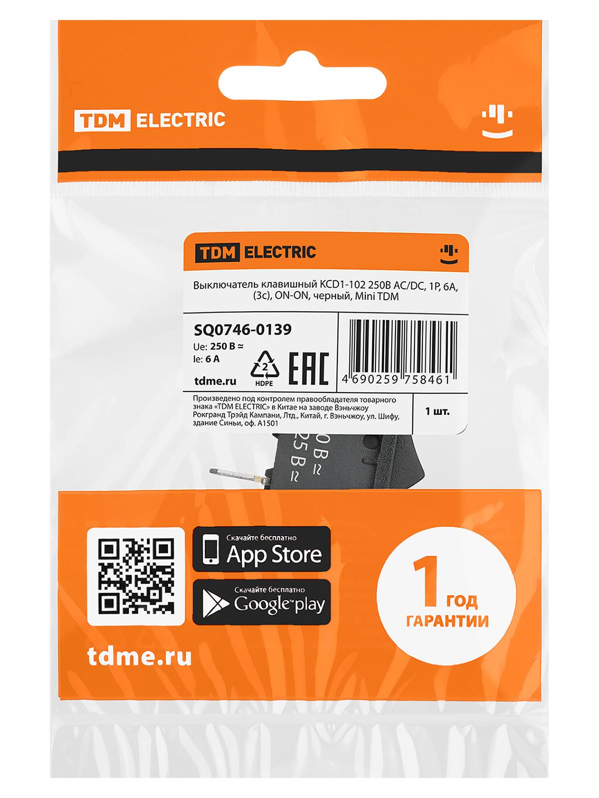 Выключатель клавишный KCD1-102 250В AC/DC, 1P, 6А, (3с), ON-ON, черный, Mini, код SQ0746-0139, производитель TDM