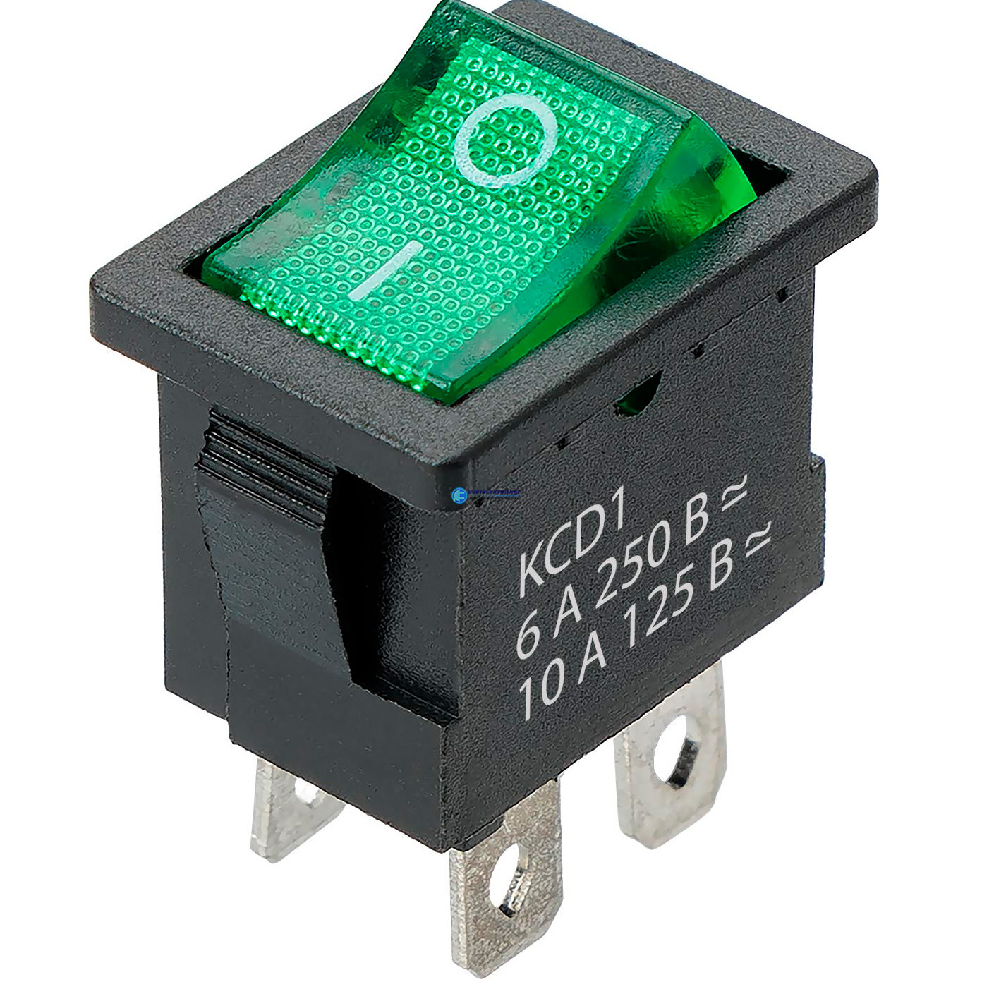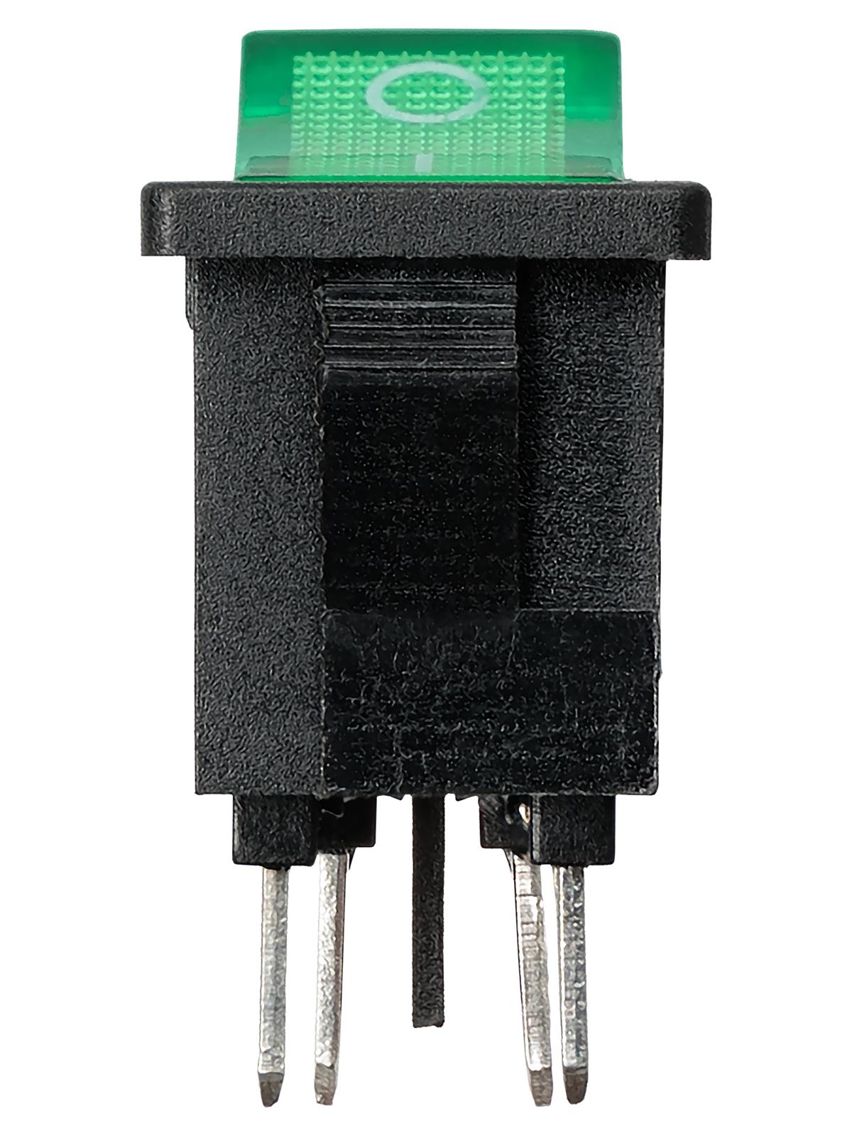 Выключатель клавишный KCD1-201N 250В AC/DC, 2P, 6А, (4с), ON-OFF, черный корпус, зеленая клавиша с LED подсветкой, Mini, код SQ0746-0142, производитель TDM