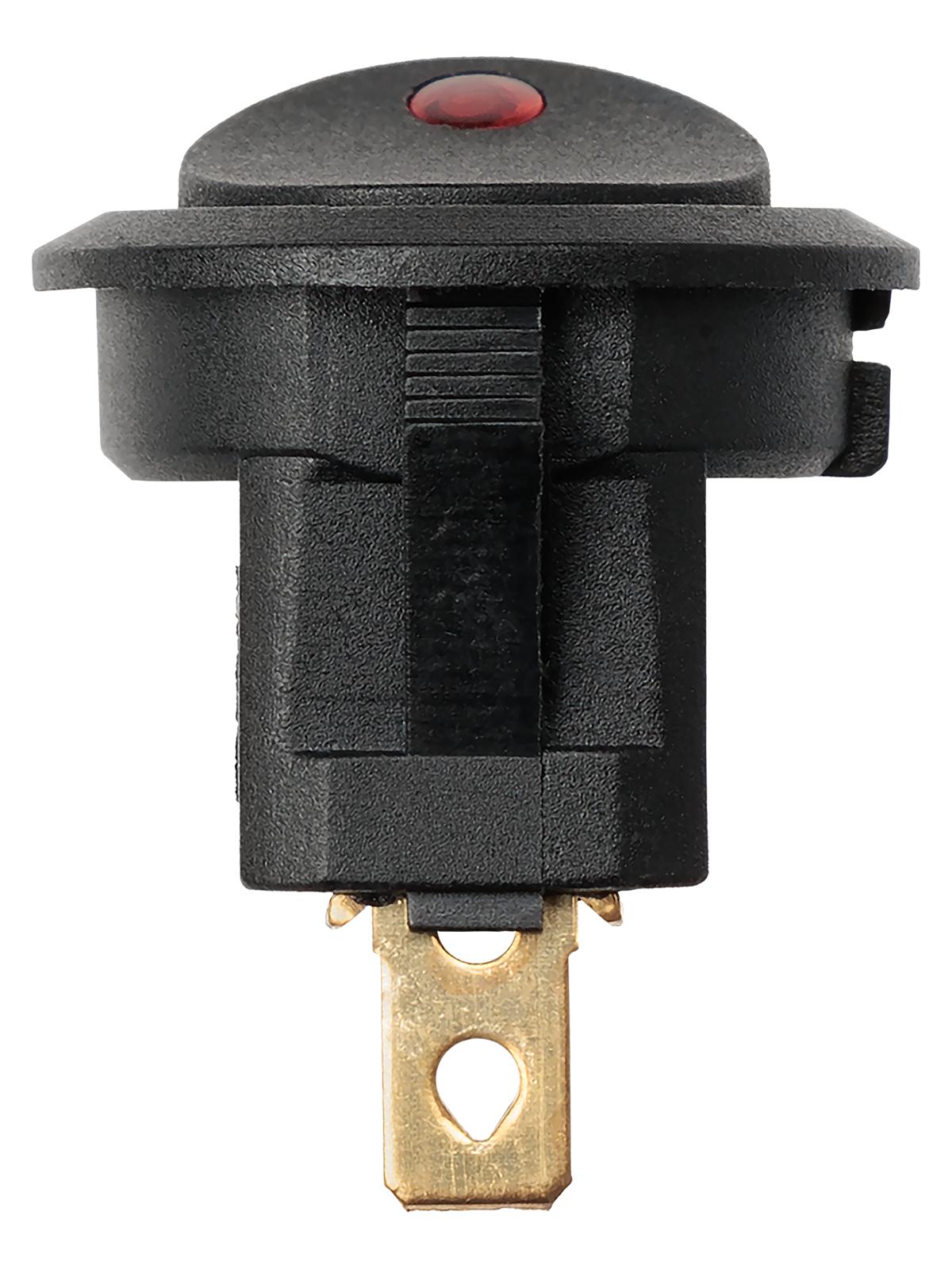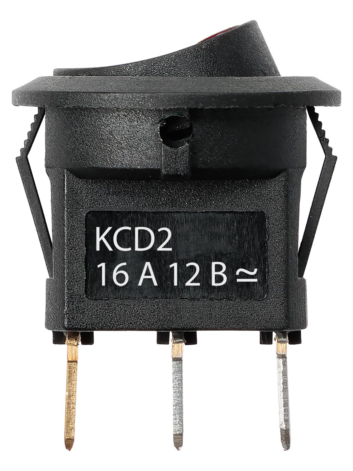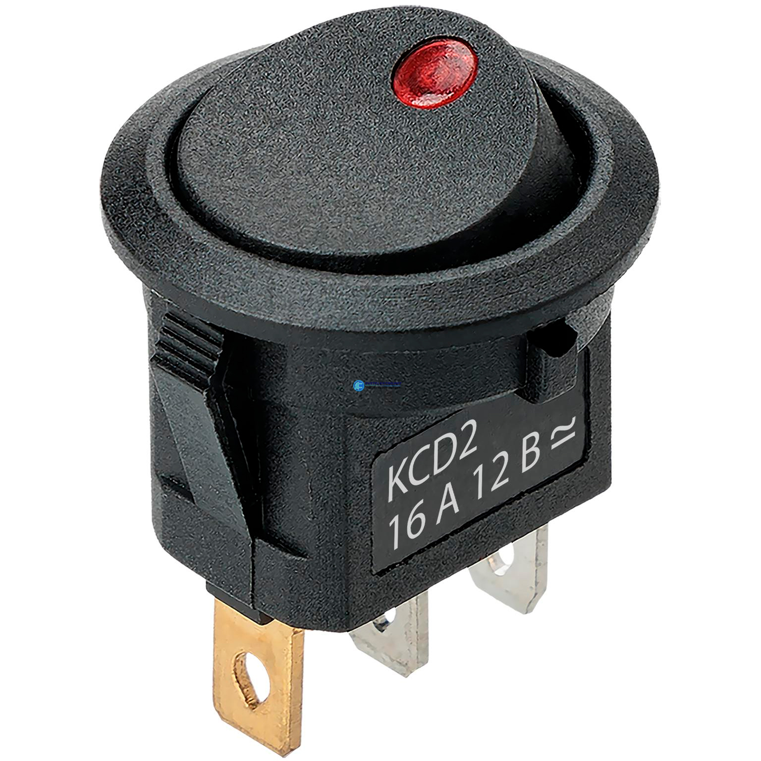 Выключатель клавишный круглый KCD2-101N-2 12В AC/DC, 1P, 16А, (3с), ON-OFF, черный с красной точечной LED подсветкой SQ0746-0146 TDM