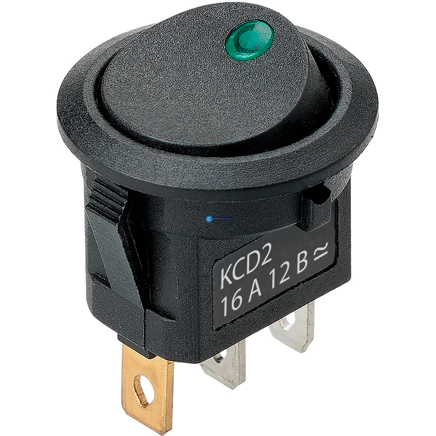 Выключатель клавишный круглый KCD2-101N-2 12В AC/DC, 1P, 16А, (3с), ON-OFF, черный с зеленой точечной LED подсветкой, код SQ0746-0149, производитель TDM