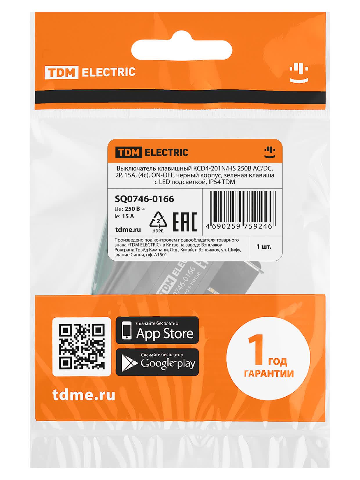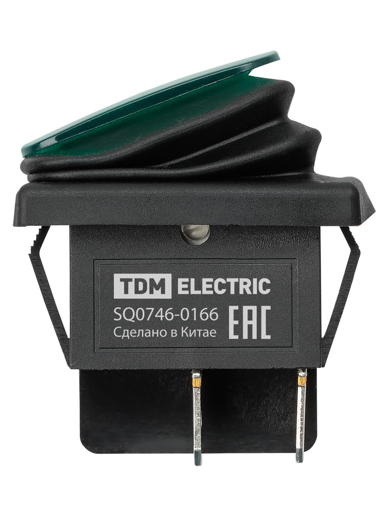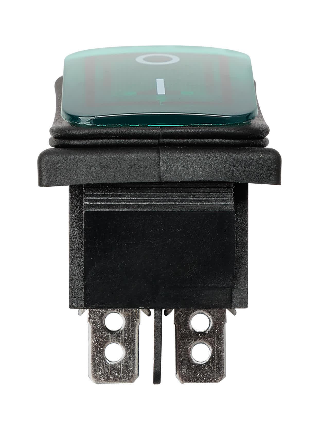 Выключатель клавишный KCD4-201N/HS 250В AC/DC, 2P, 15А, (4с), ON-OFF, черный корпус, зеленая клавиша с LED подсветкой, IP54, код SQ0746-0166, производитель TDM