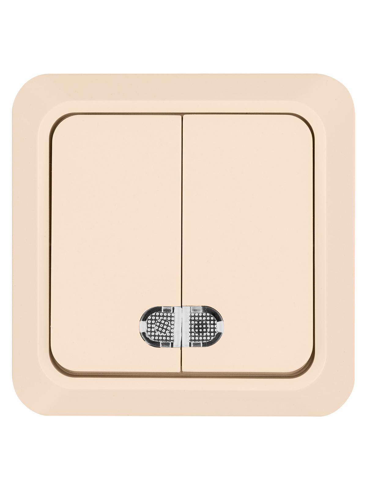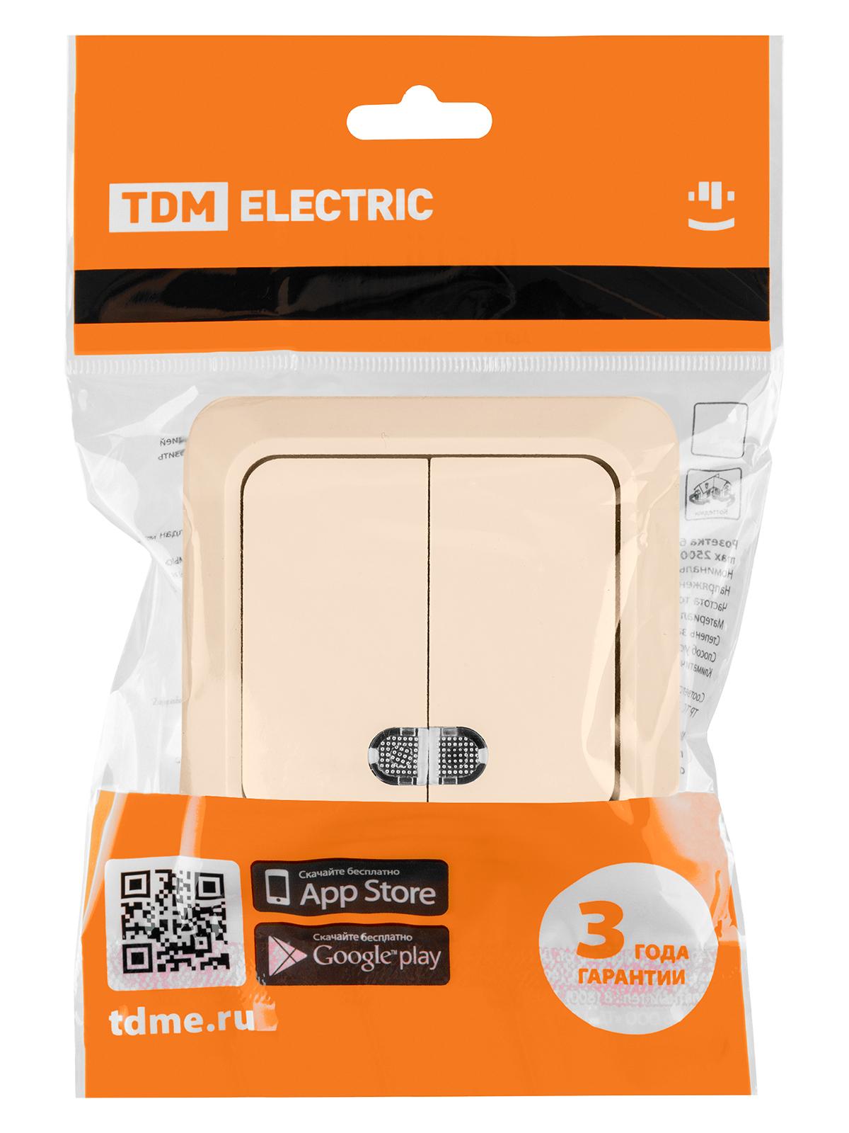 Выключатель 2-кл. открытой установки с подсветкой IP20 10А, сл. кость "Ладога", код SQ1801-0008, производитель TDM