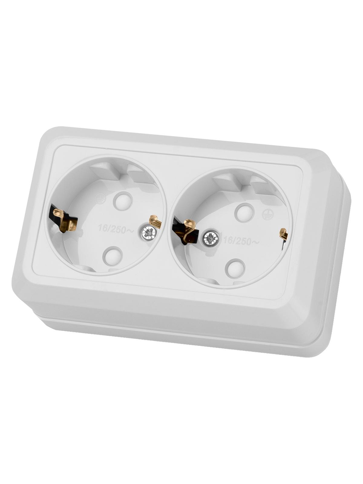 Розетка двойная 2П+З открытой установки с защитными шторками IP20 16А, белый ''Ладога'', код SQ1801-0062, производитель TDM