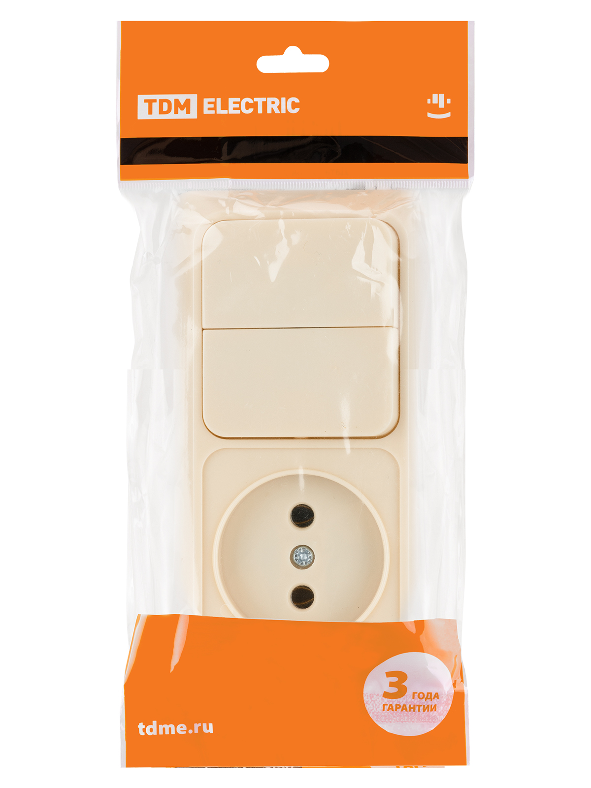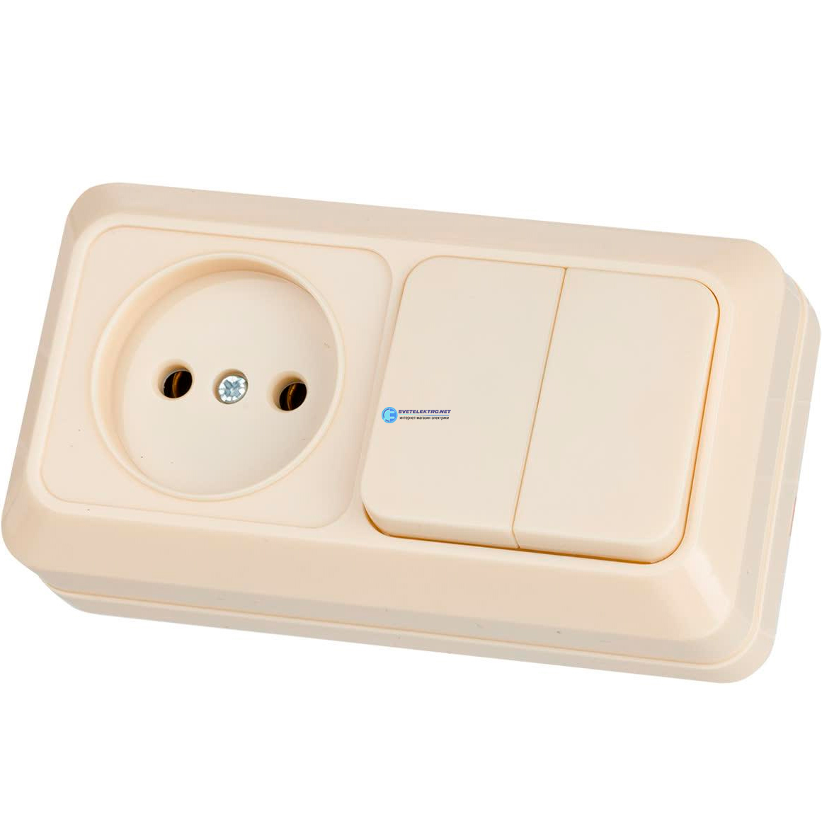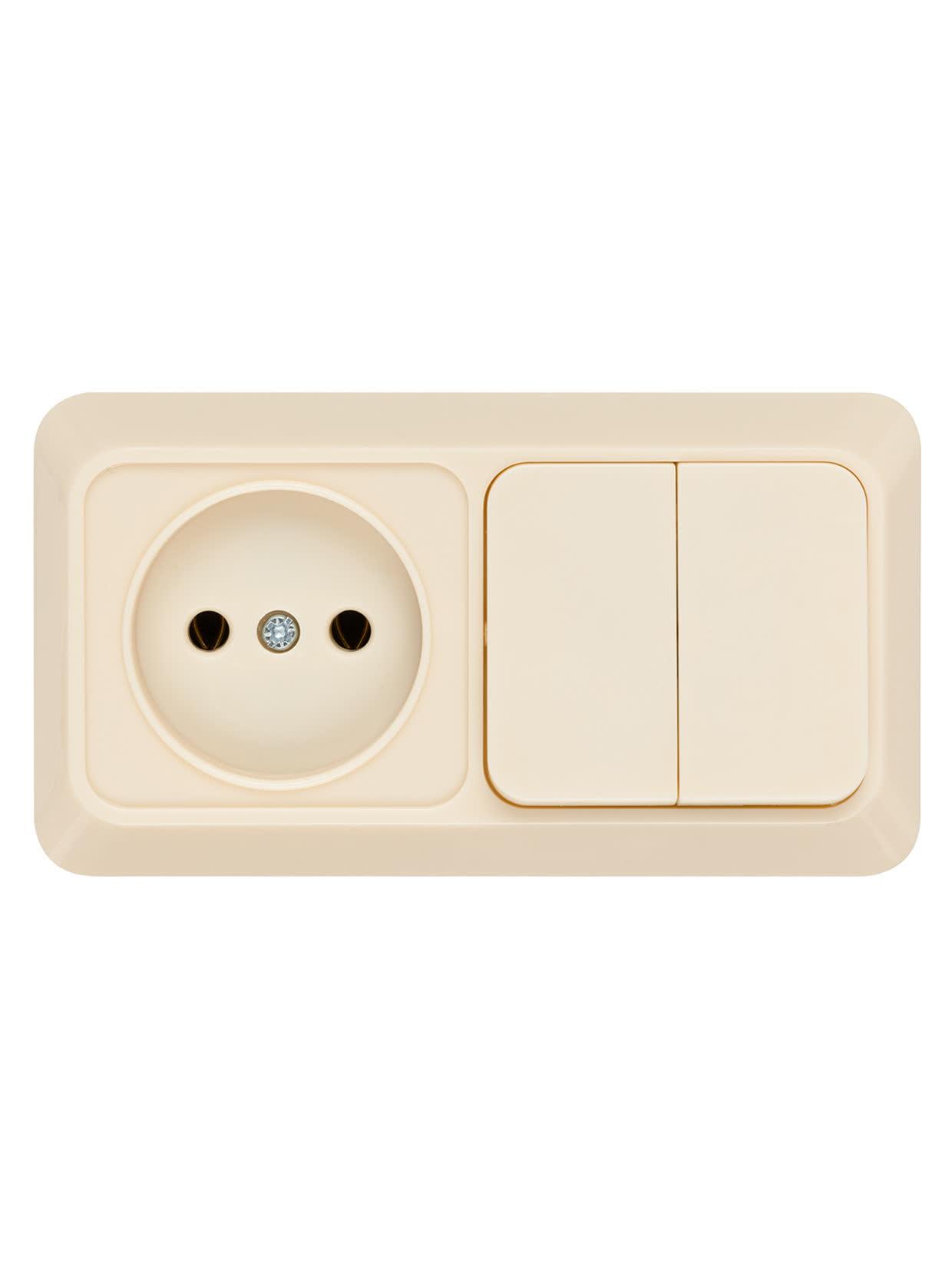Блок комбинированный выкл. 2-кл. 10А + розетка 2П 10А 250В БКВР IP20 сл. кость "Ладога", код SQ1801-0206, производитель TDM