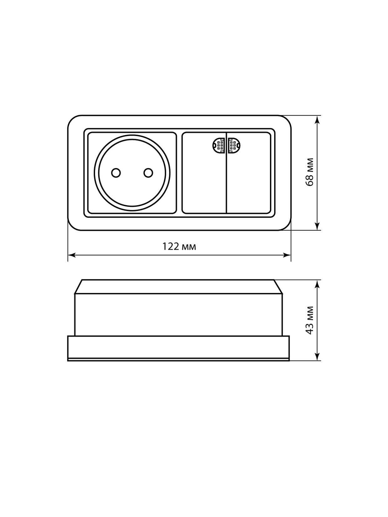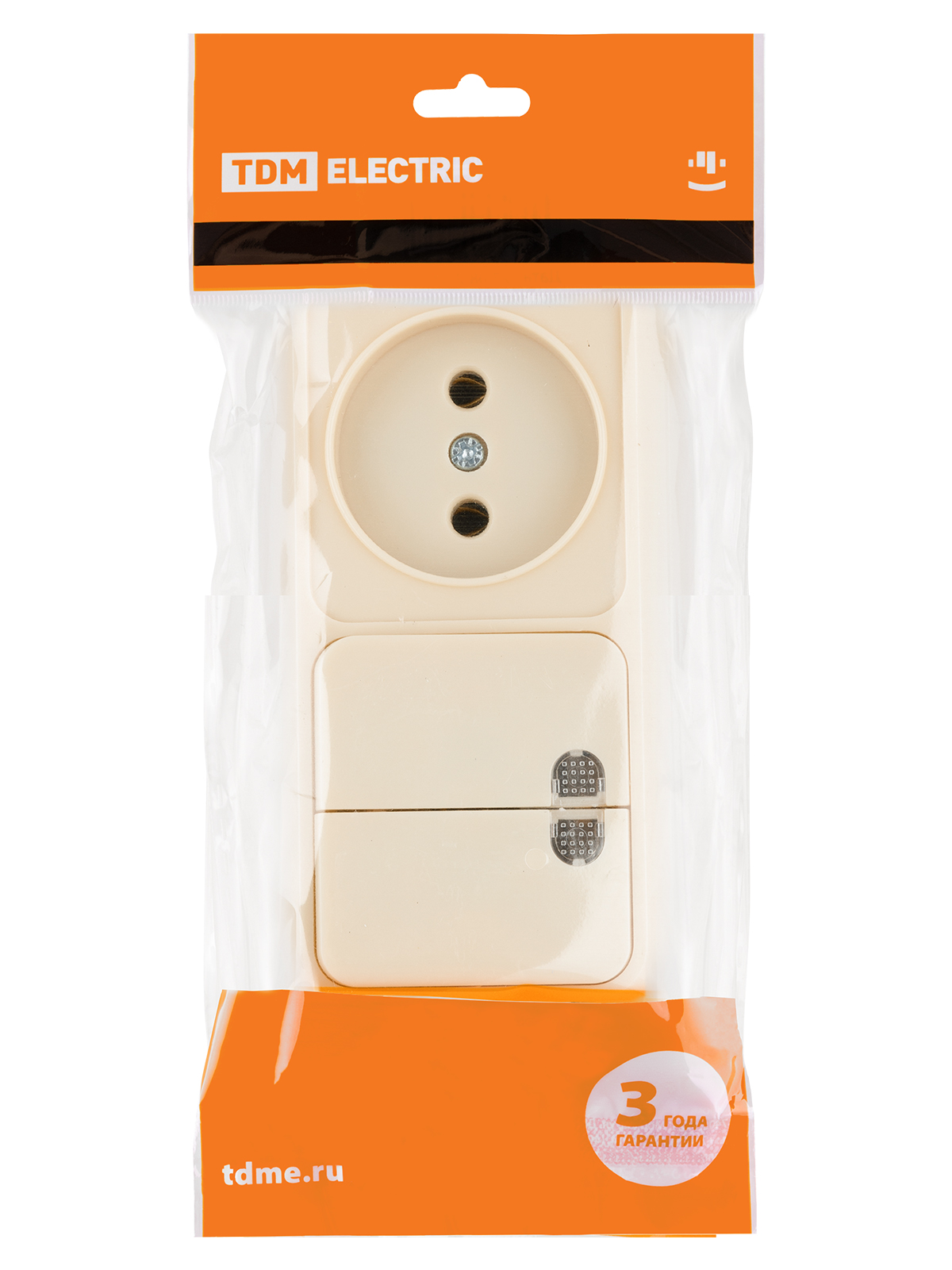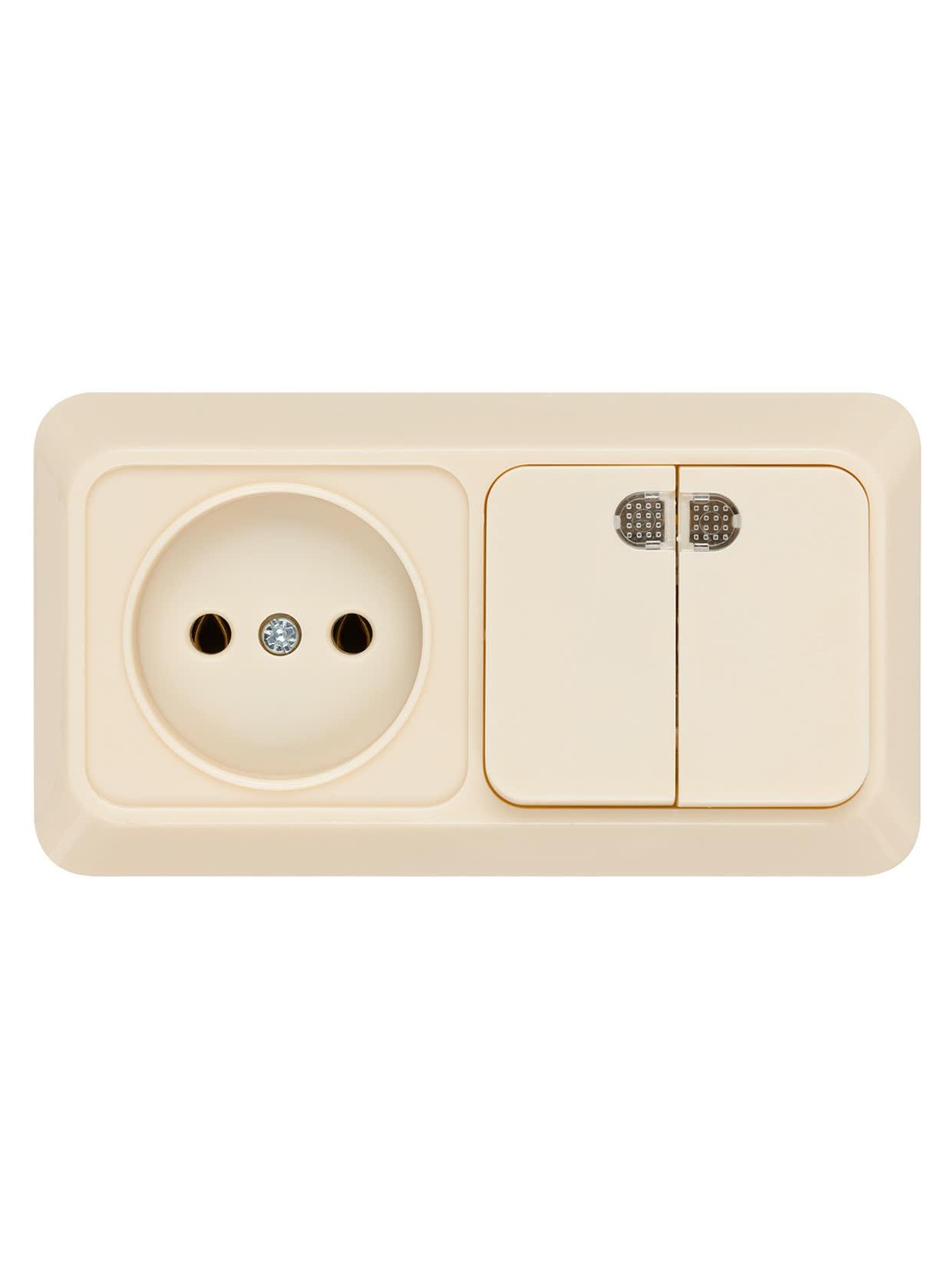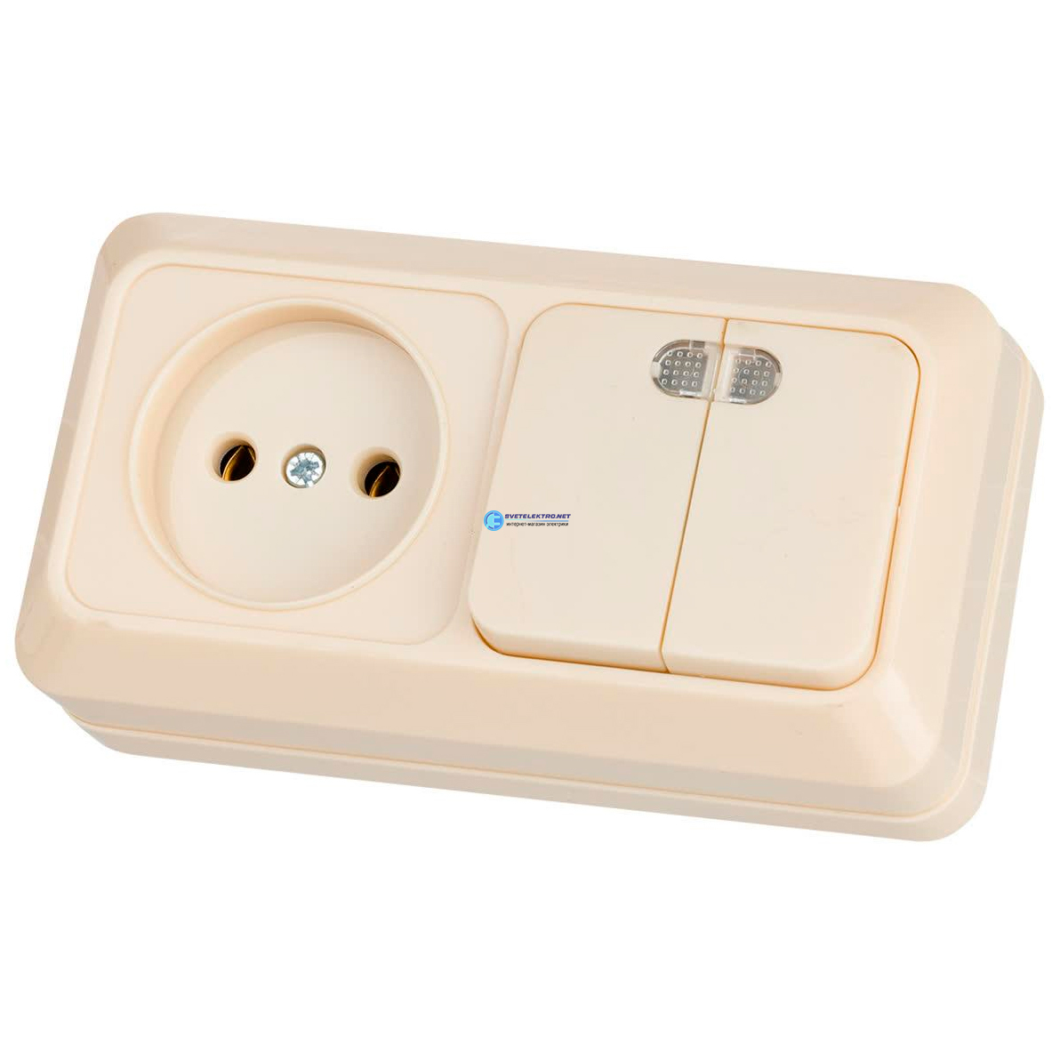 Блок комбинированный выкл. 2-кл. с/п 10А + розетка 2П 10А 250В БКВР IP20 сл. кость "Ладога", код SQ1801-0208, производитель TDM