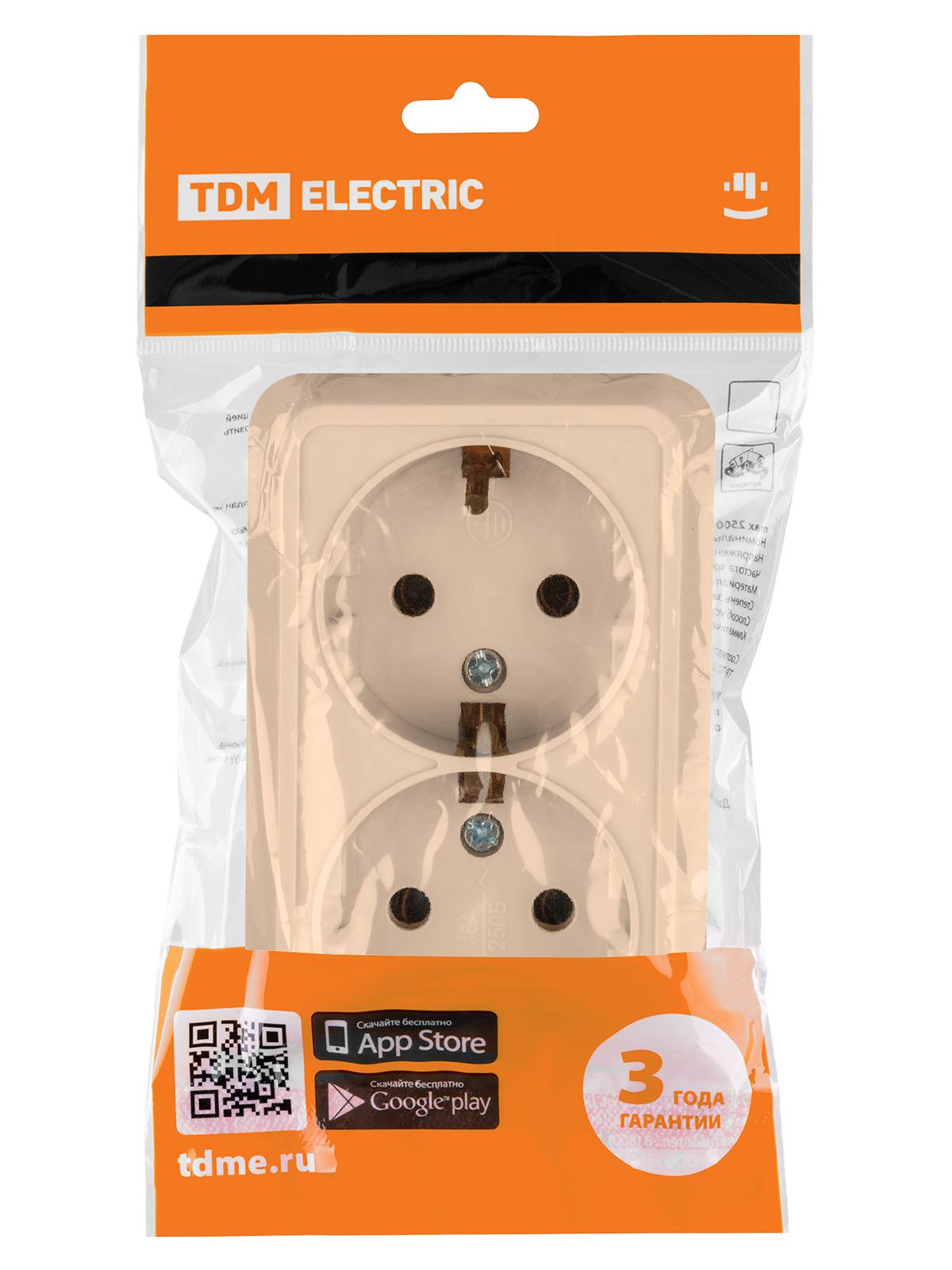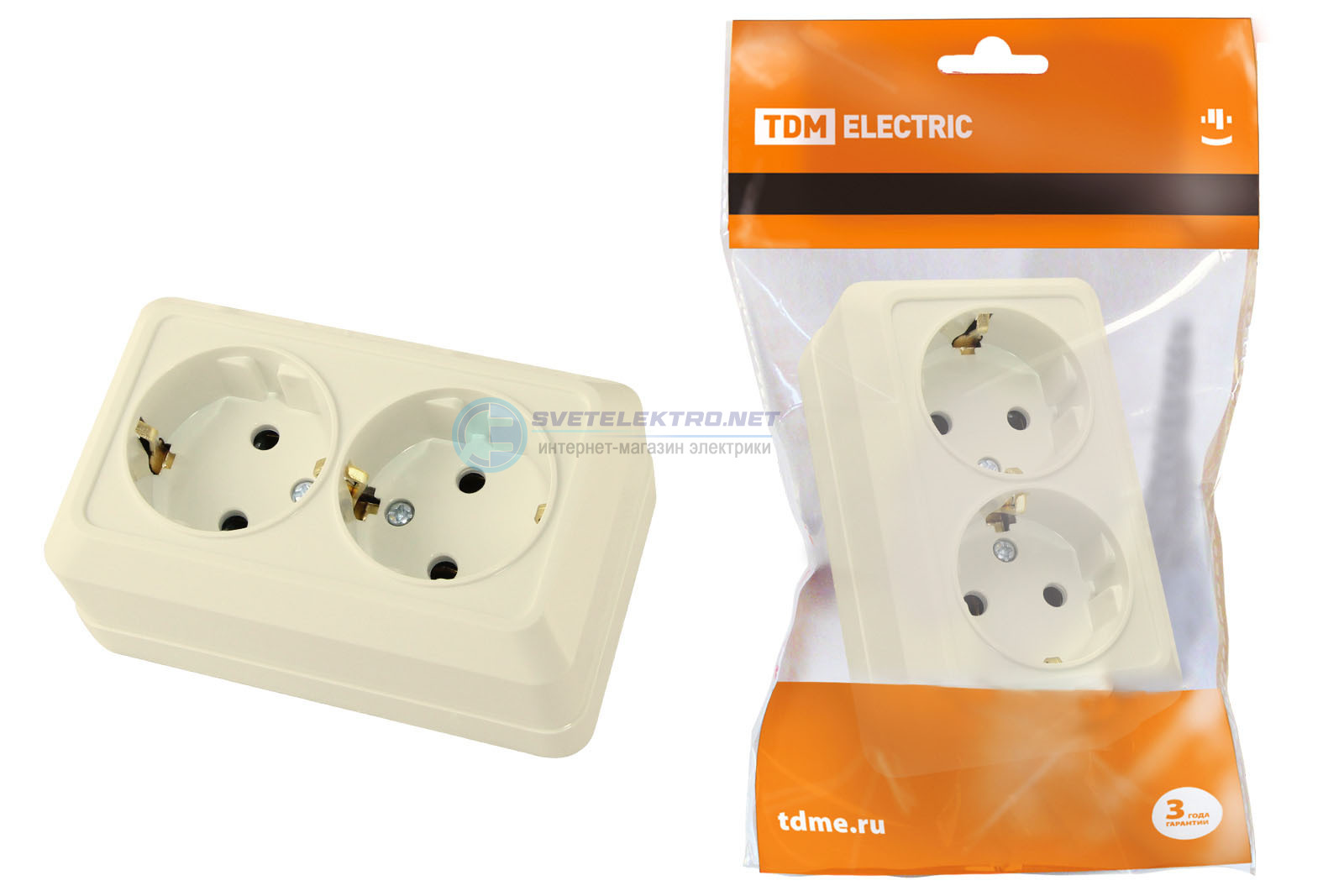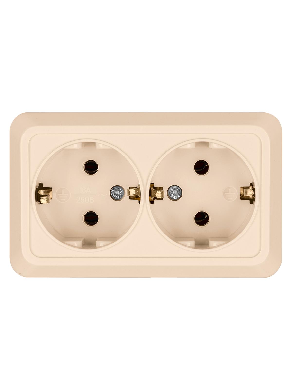 Розетка двойная 2П+3 открытой установки IP20 16А 250В (керамика) сл. кость "Ладога", код SQ1801-0213, производитель TDM