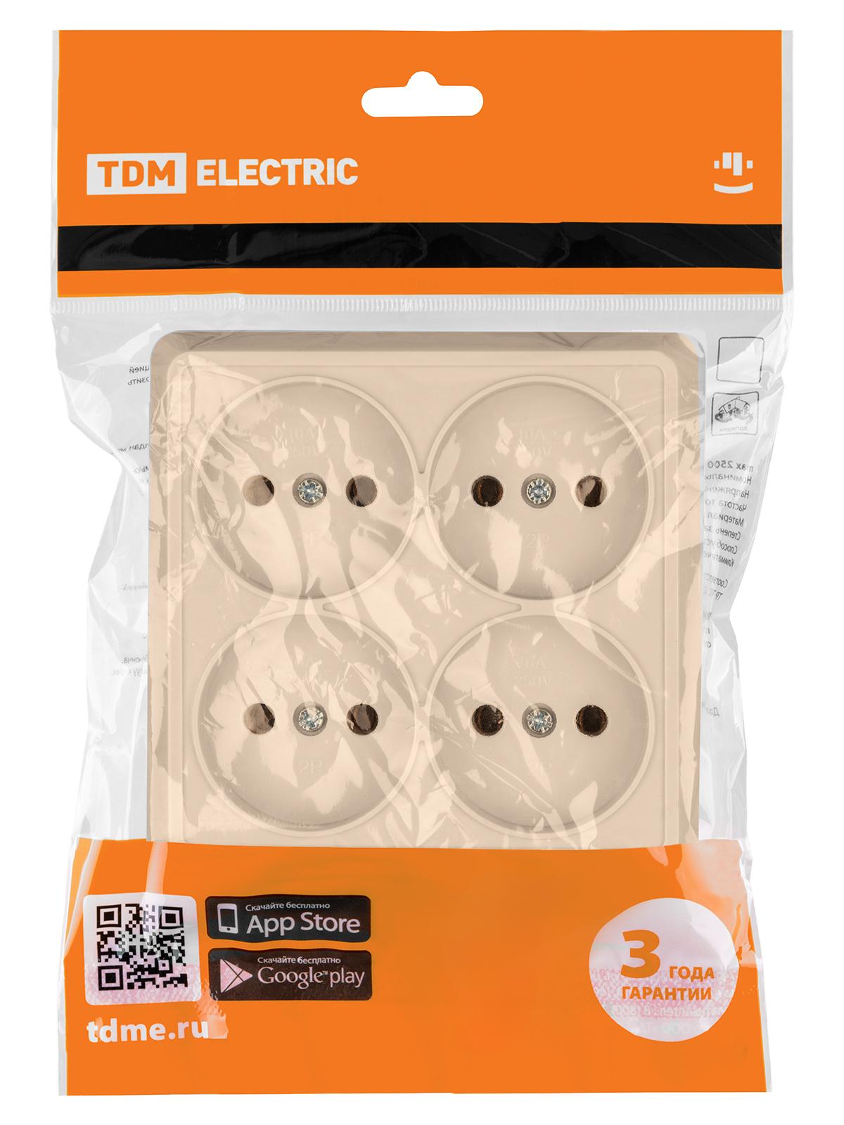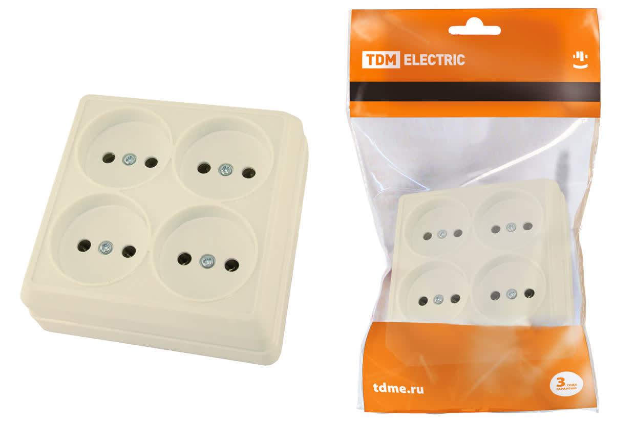 Розетка четырехместная 2П открытой установки IP20 10А сл. кость "Ладога", код SQ1801-0220, производитель TDM