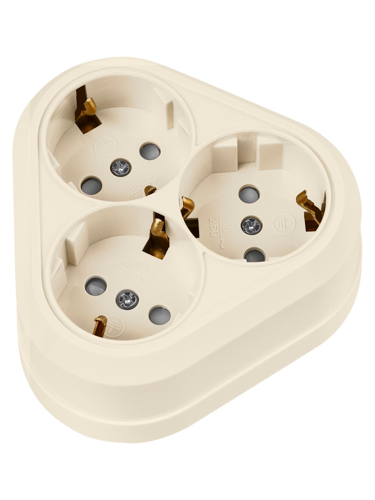 Розетка треугольная 2П+3 открытой установки IP20 16A с защитными шторками сл.кость "Ладога", код SQ1801-0239, производитель TDM