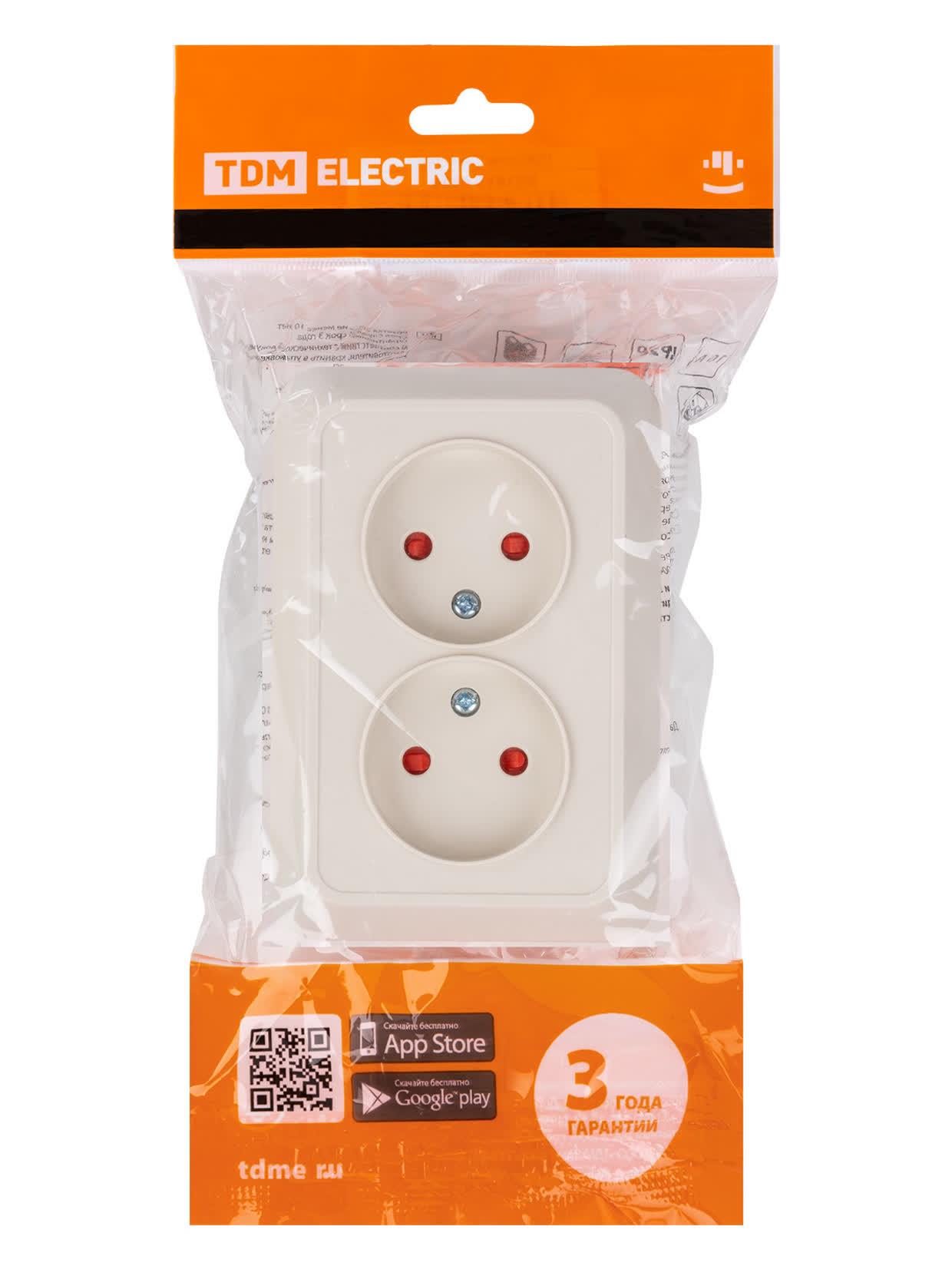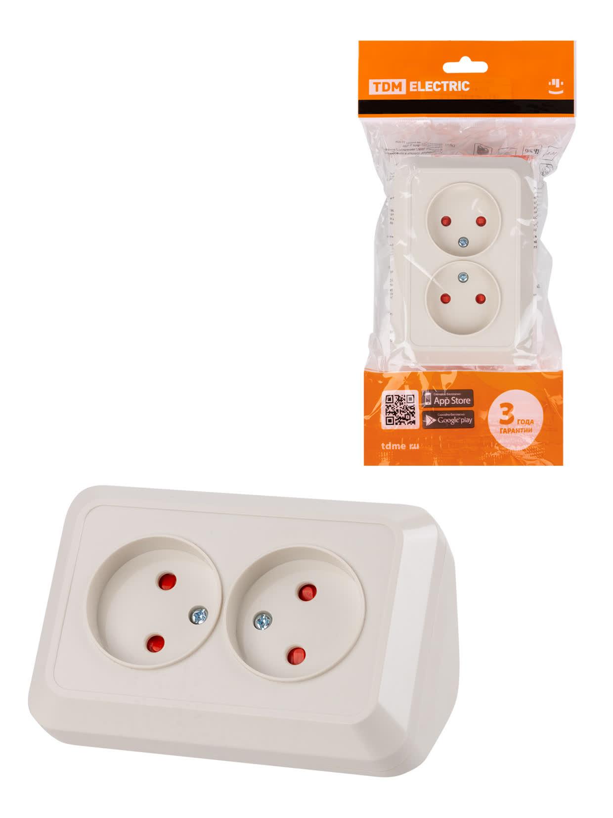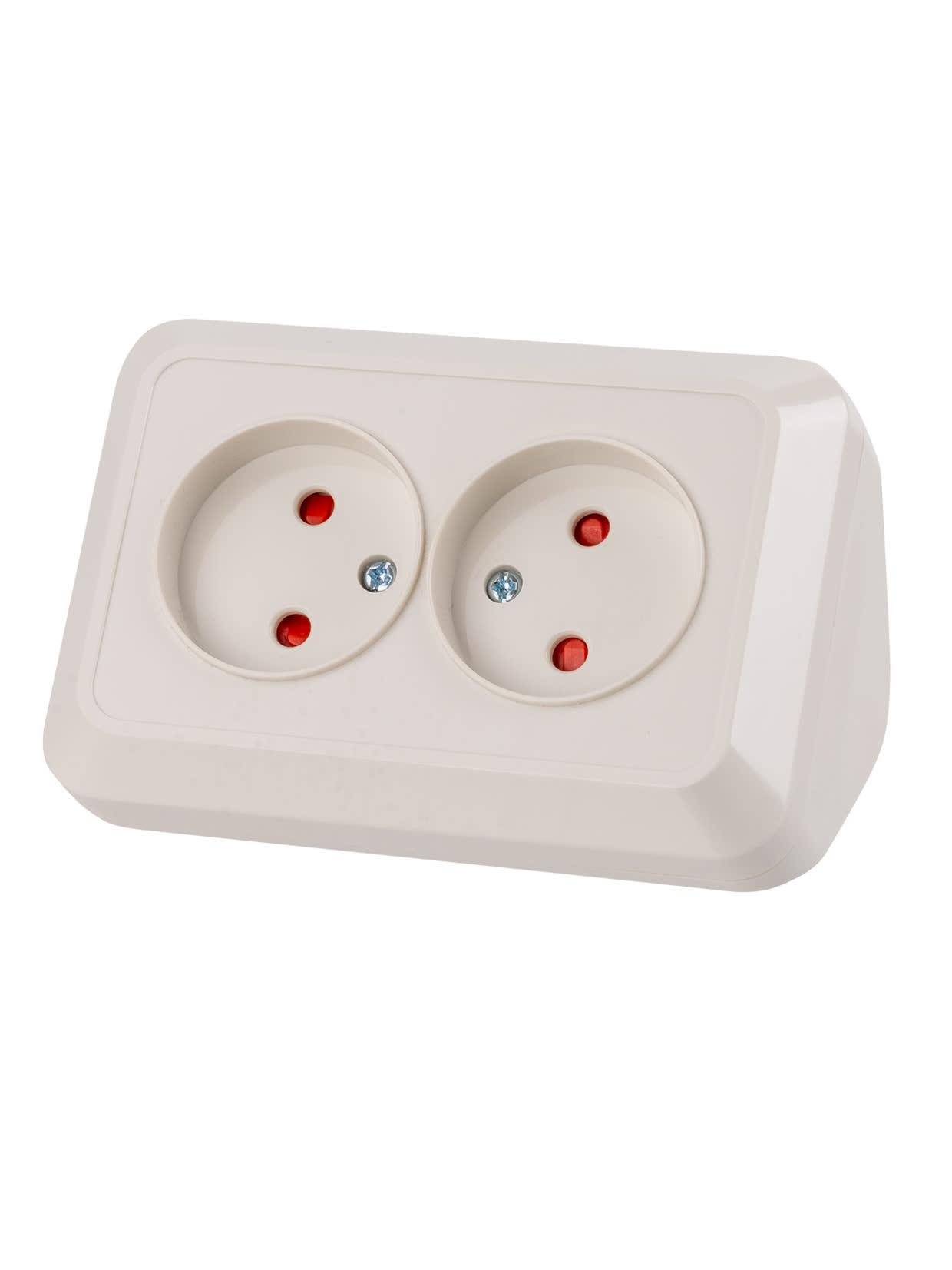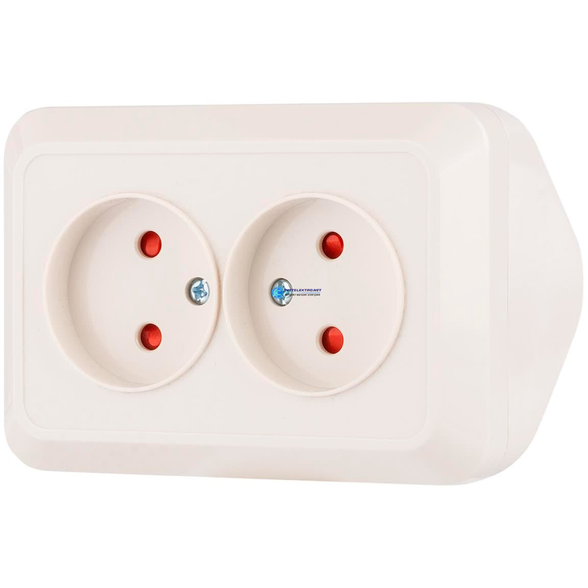 Розетка угловая двойная 2П открытой установки с з/ш IP20 250В 10А сл. кость "Ладога", код SQ1801-0242, производитель TDM