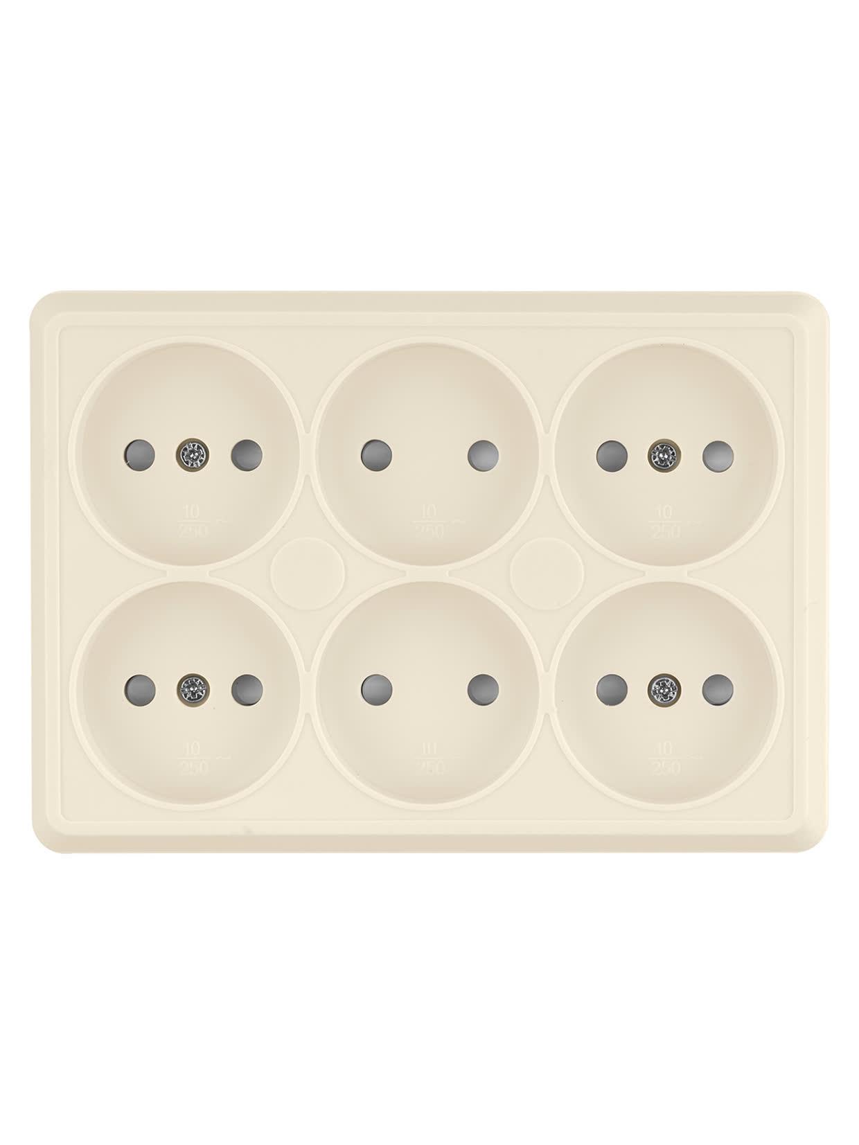 Розетка шестиместная 2П открытой установки IP20 10А с защитными шторками сл. кость "Ладога", код SQ1801-0245, производитель TDM