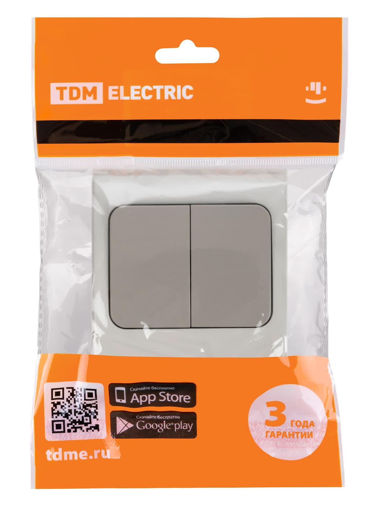 Выключатель 2-кл. скрытой установки IP54 10А серый "Вуокса", код SQ1803-0102, производитель TDM