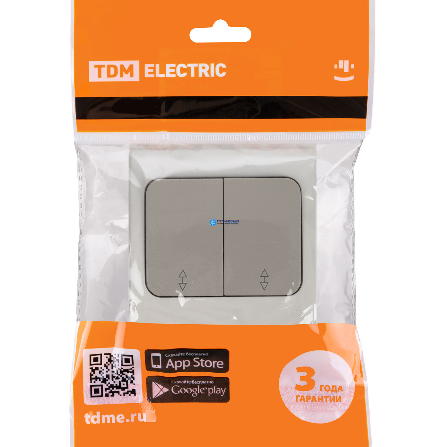 Переключатель на 2 направления 2-кл. скрытой установки IP54 10А серый "Вуокса", код SQ1803-0104, производитель TDM