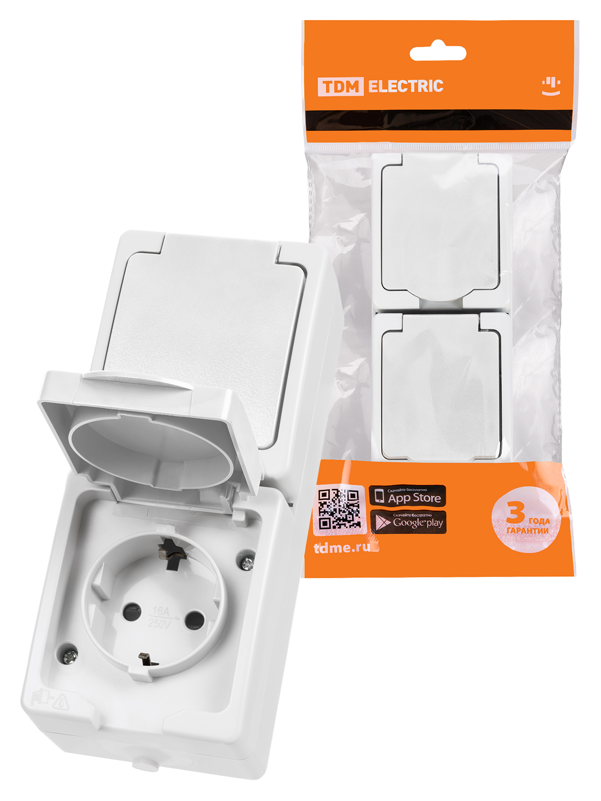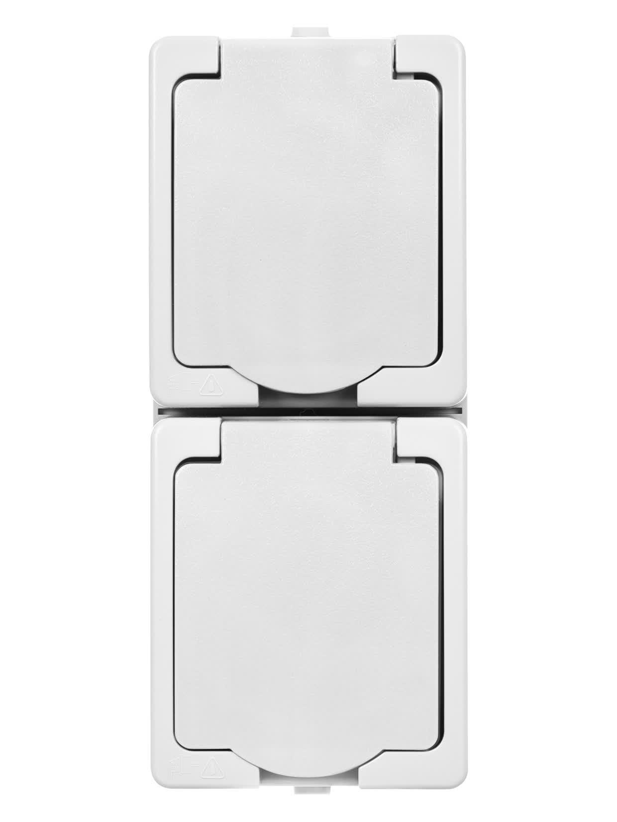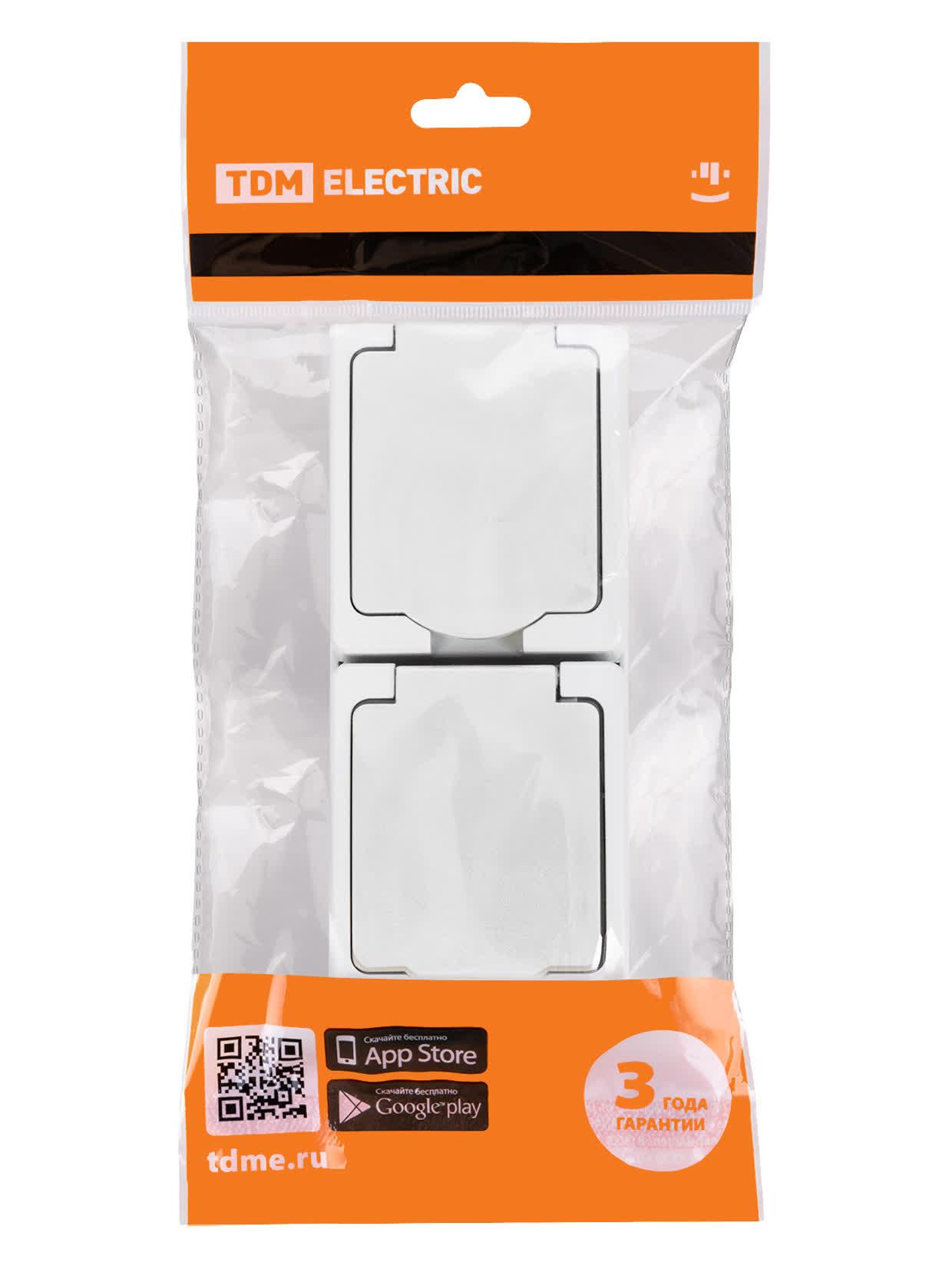 Розетка двойная 2П+З (вертикальная) открытой установки IP54 16А белая "Вуокса", код SQ1803-1009, производитель TDM