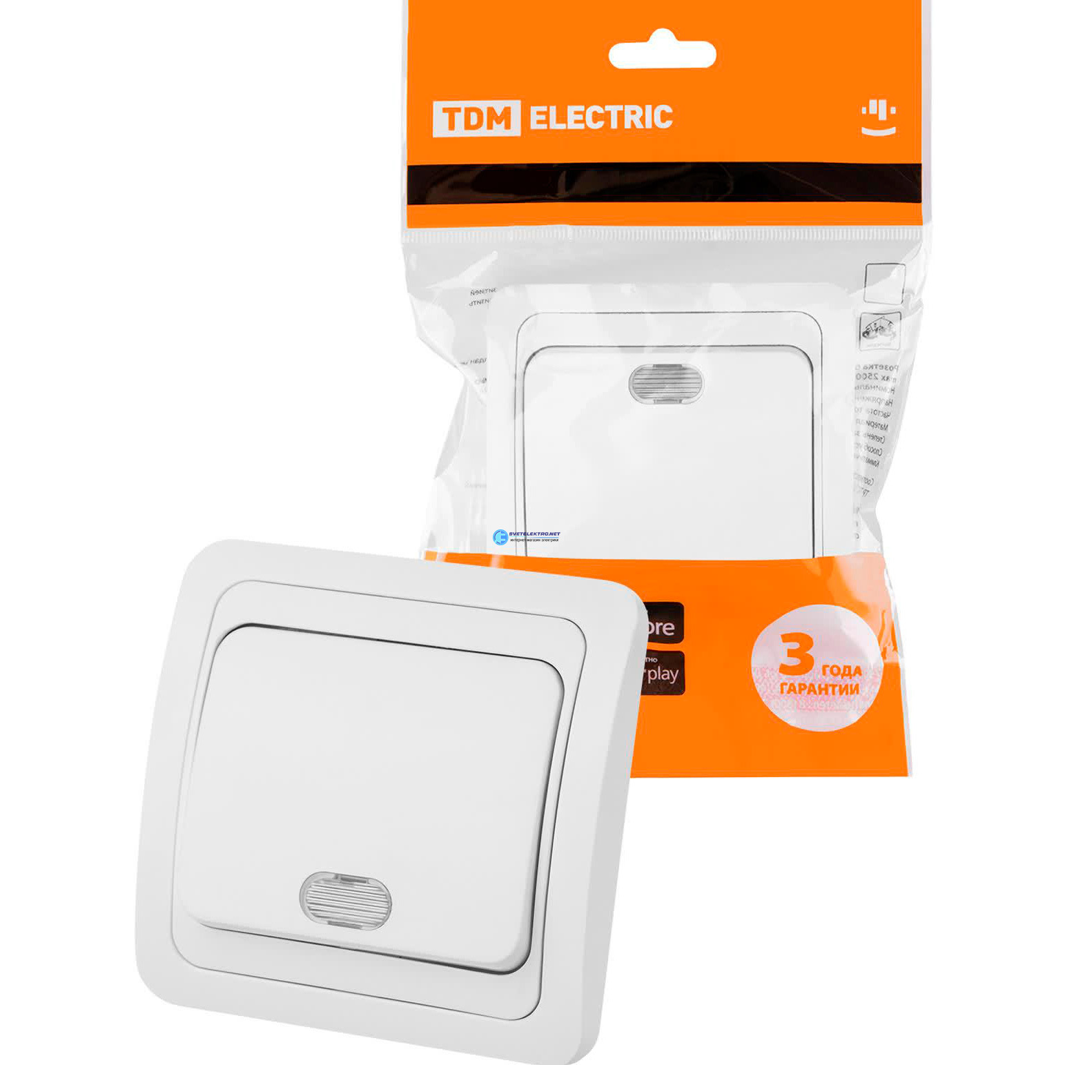 Выключатель одноклавишный с подсветкой 10А белый ''Валдай'', код SQ1804-0004, производитель TDM