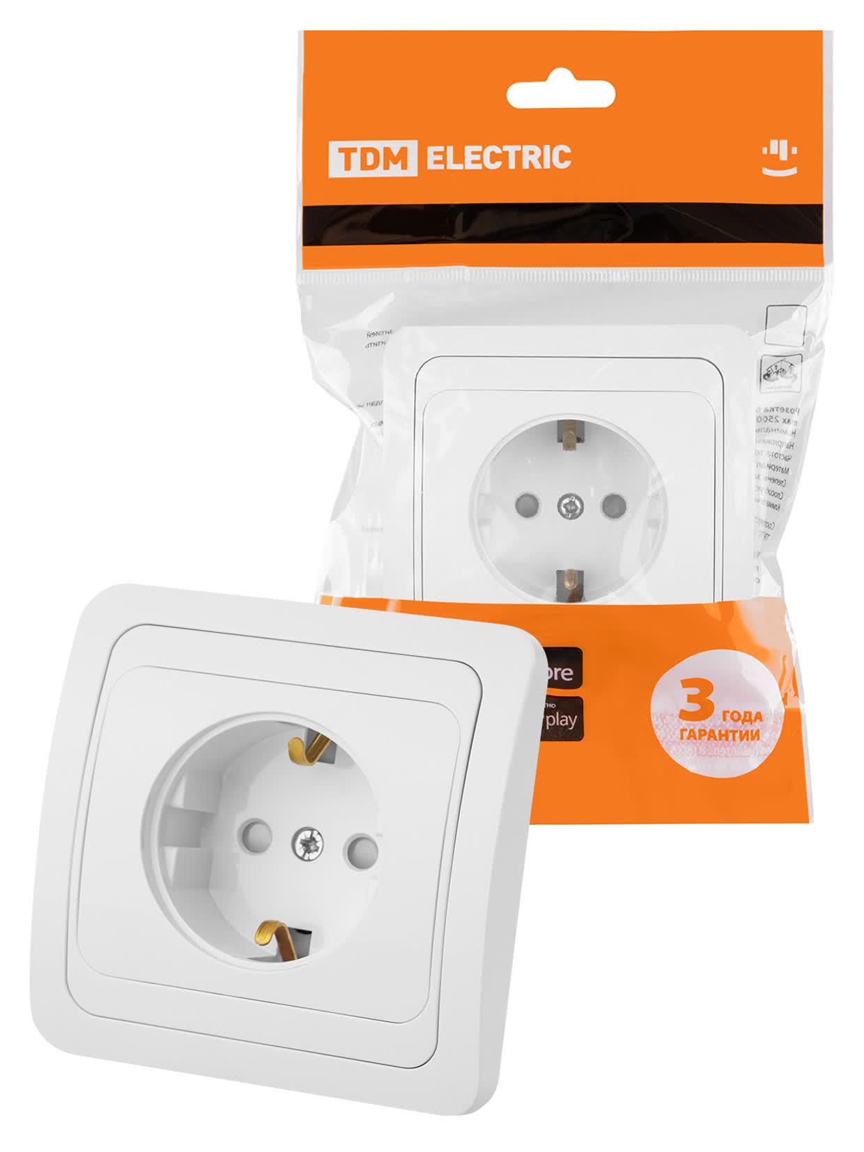 Розетка 2П+З 16А c защитными шторками белая ''Валдай'' SQ1804-0024 TDM