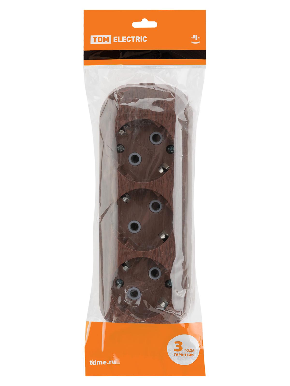 Колодка розеточная 3 гнезда 2П+3 16А 250В ""Эко"" (бук) SQ1806-0062 TDM